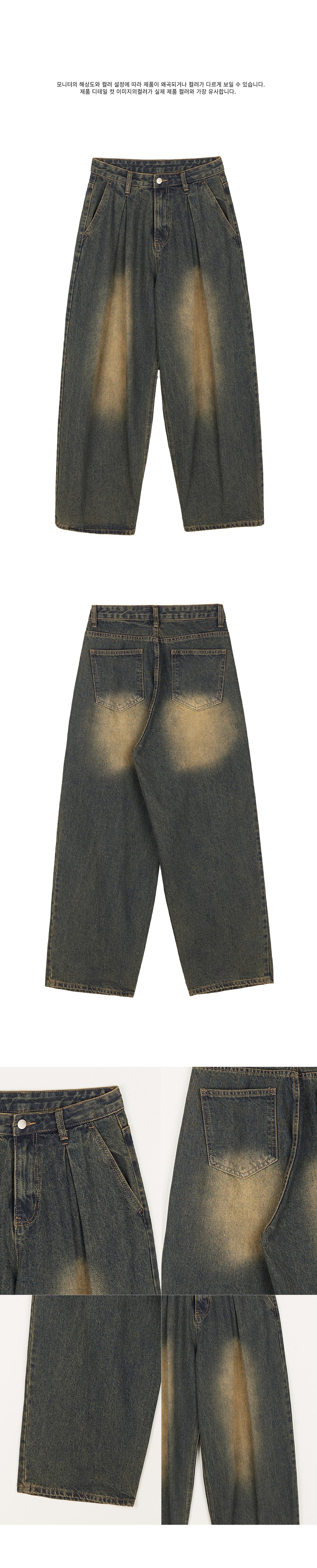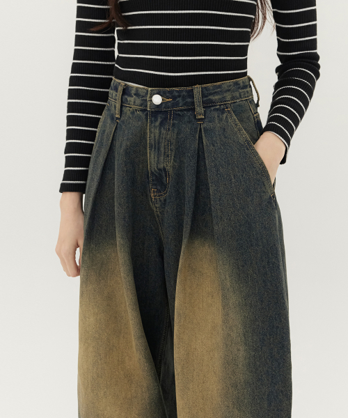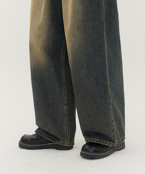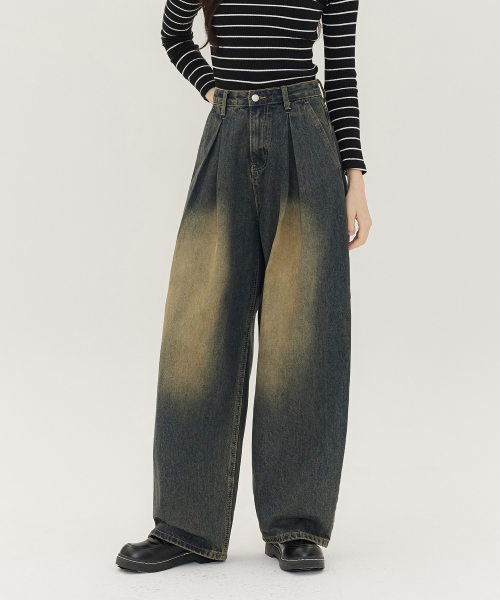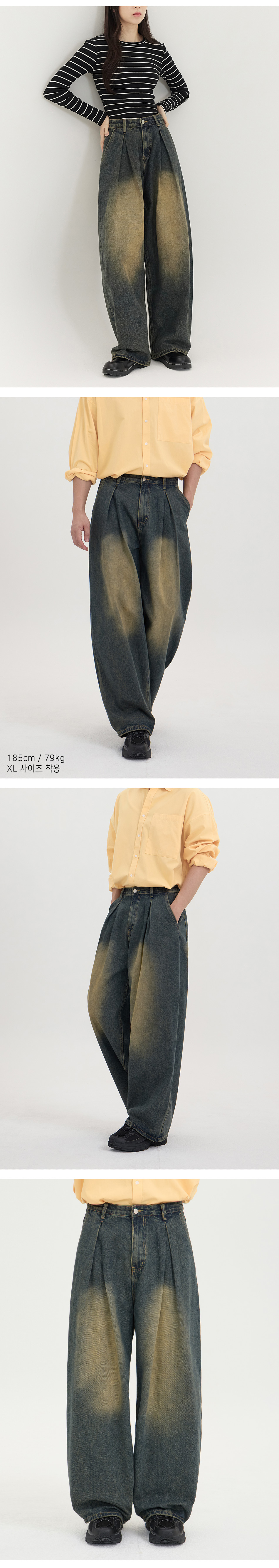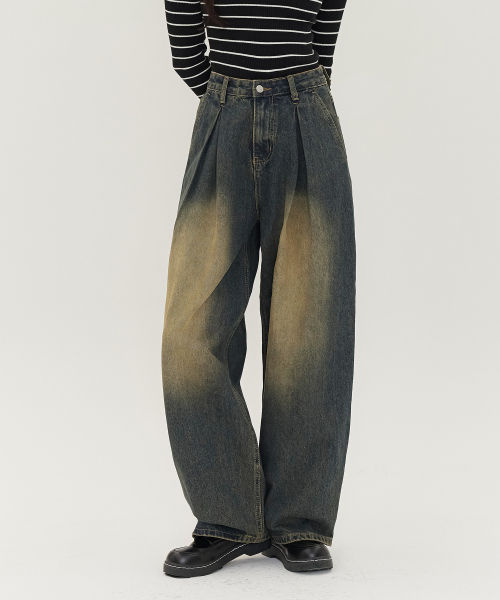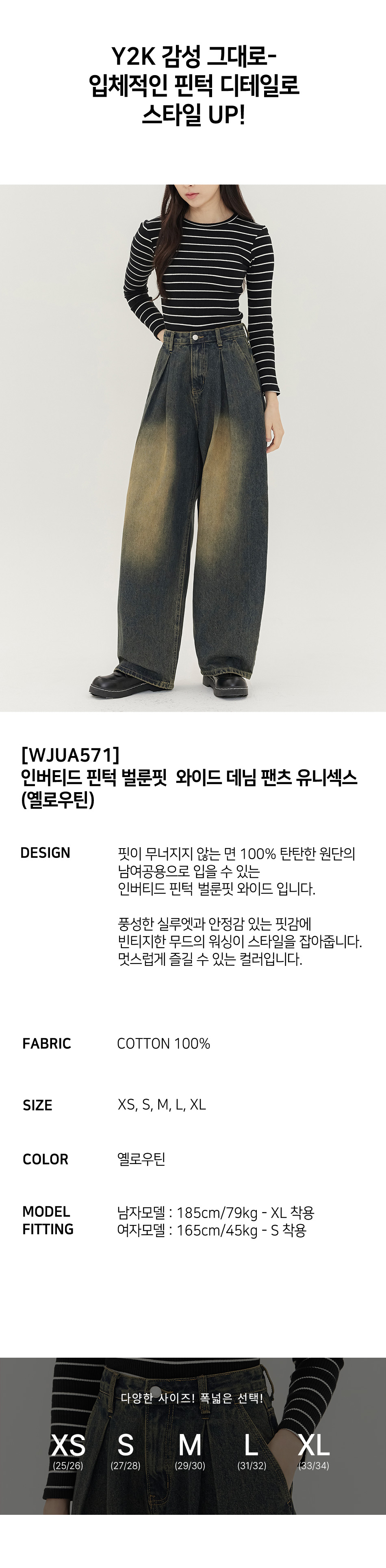 인버티드 핀턱 벌룬핏 와이드 데님 팬츠 유니섹스 (옐로우틴)