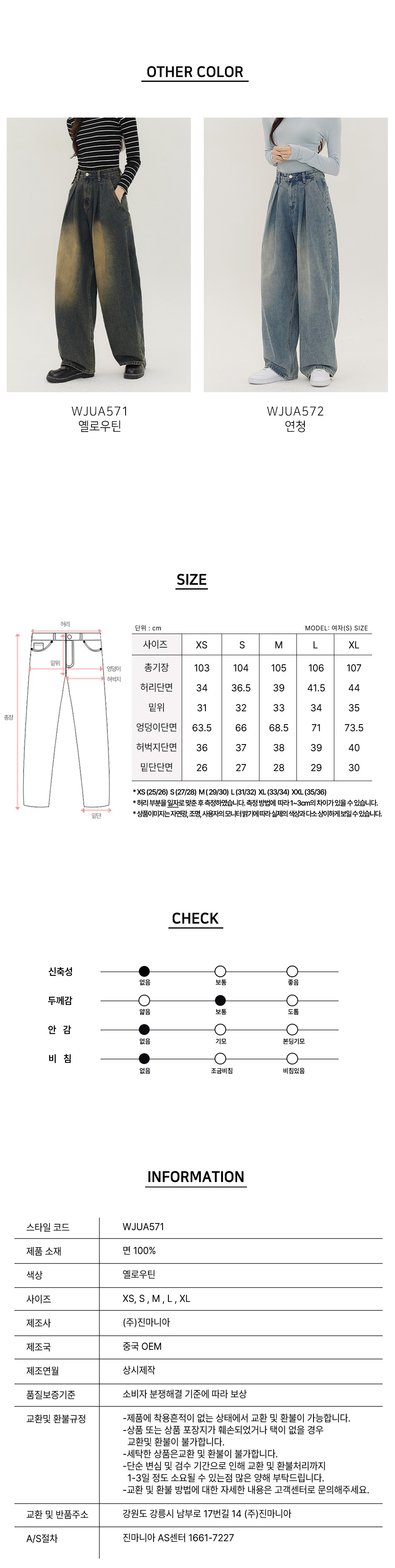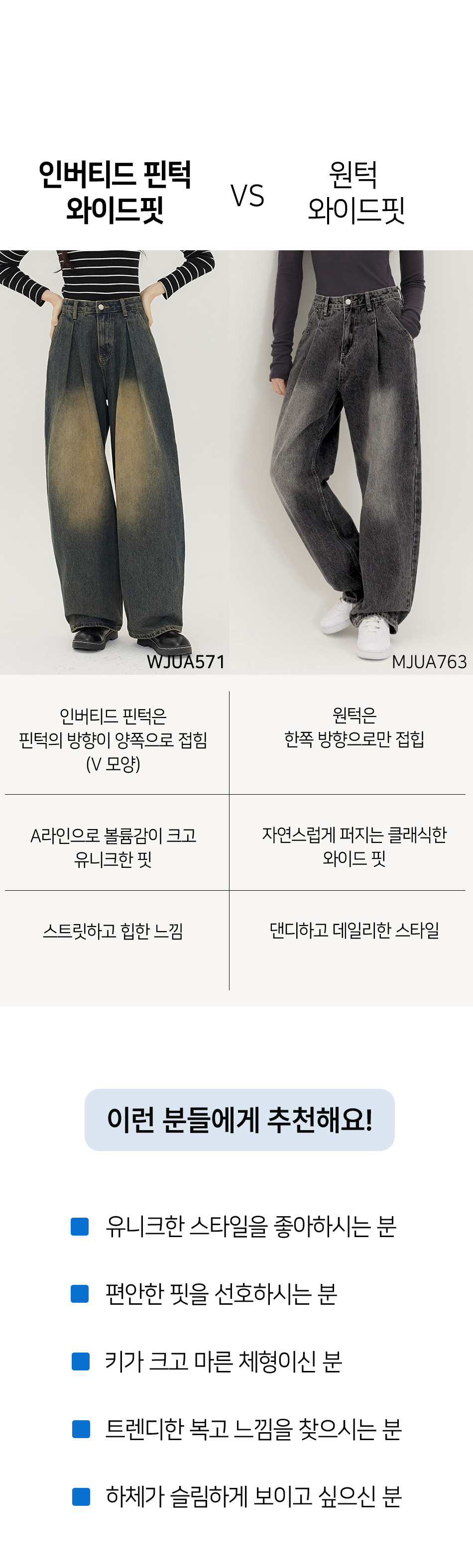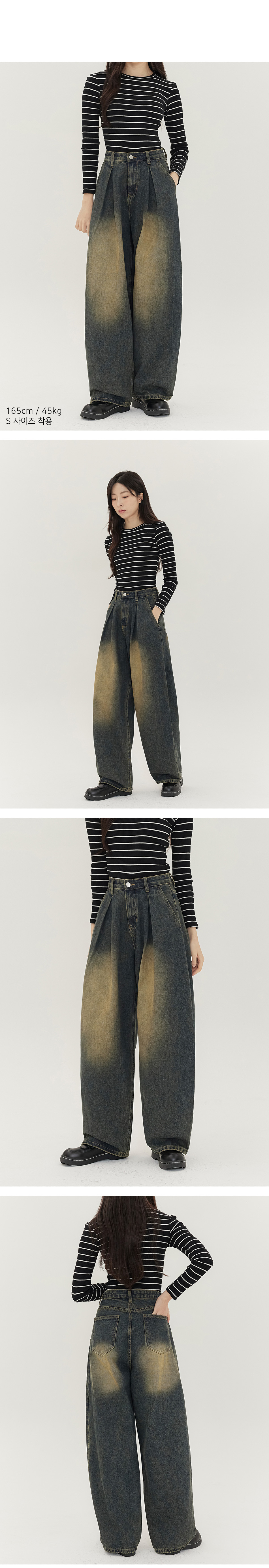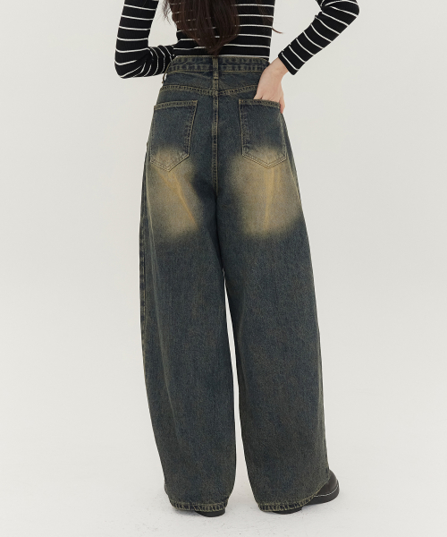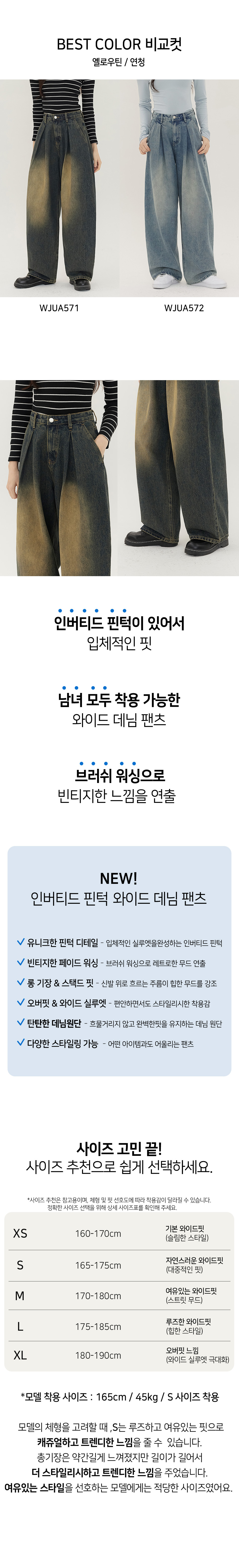 인버티드 핀턱 벌룬핏 와이드 데님 팬츠 유니섹스 (옐로우틴)