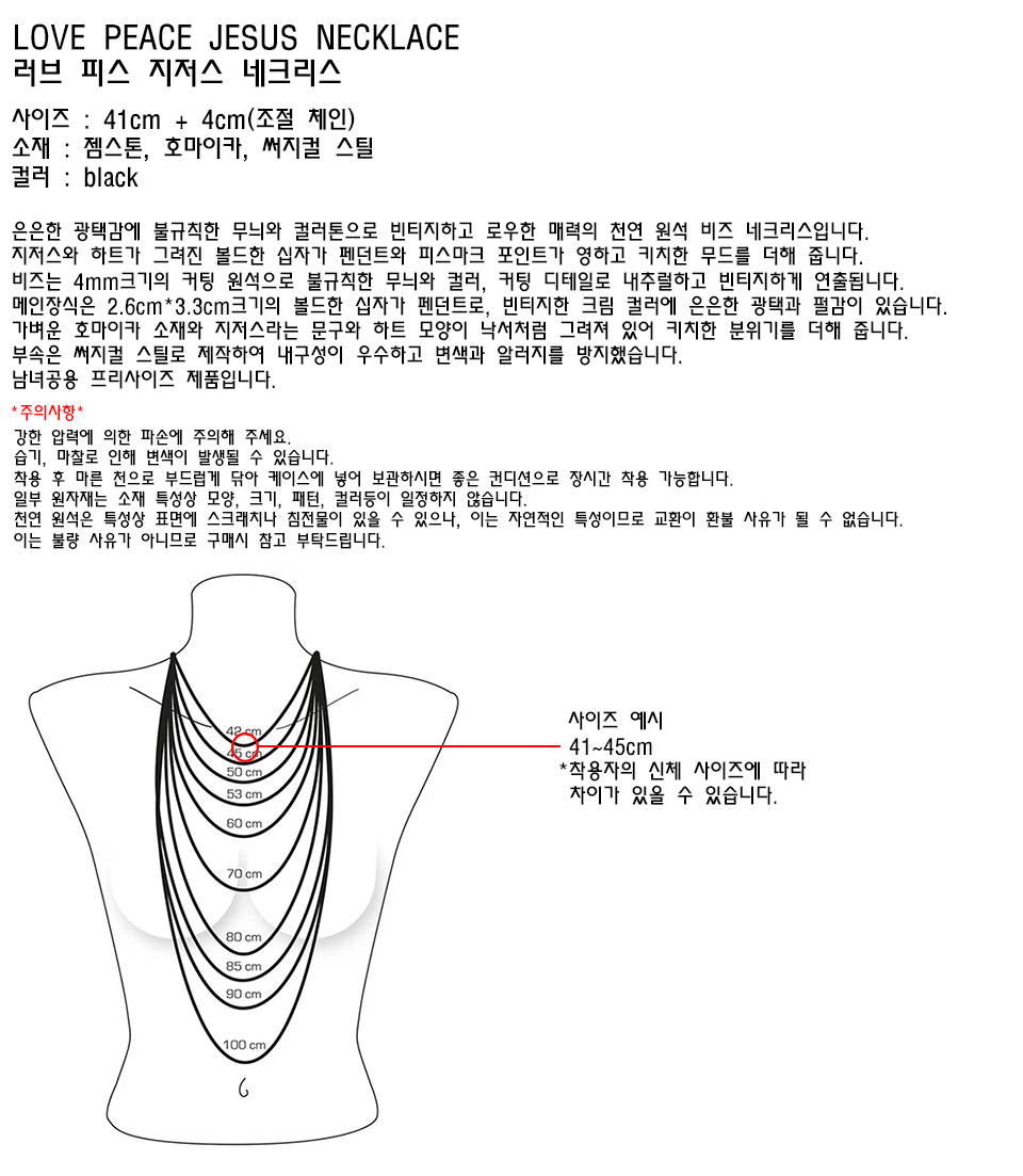 Love Peace Jesus Necklace ((Black))