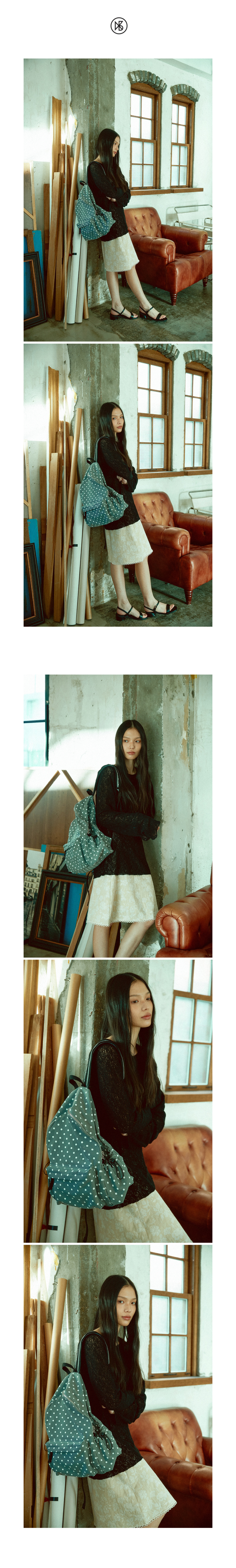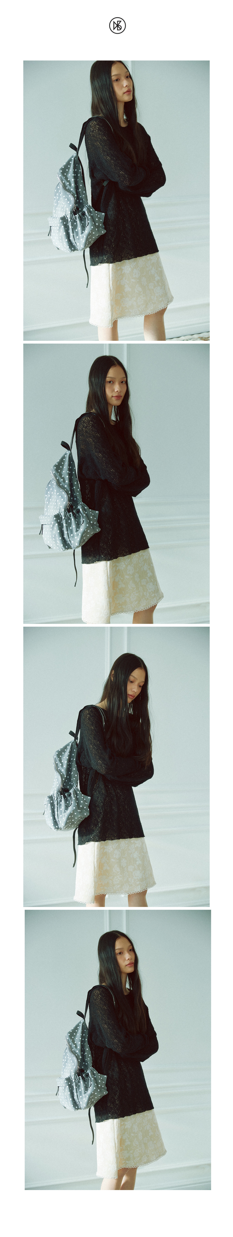앤 도트패턴 코튼 백팩_그레이