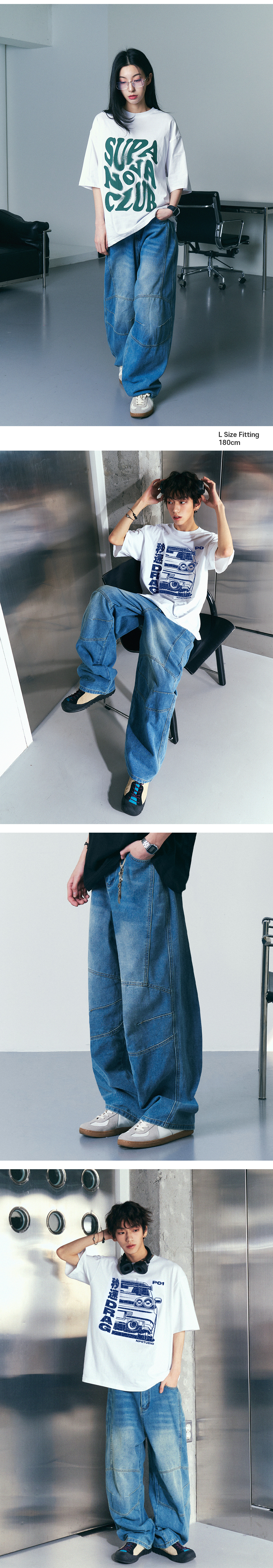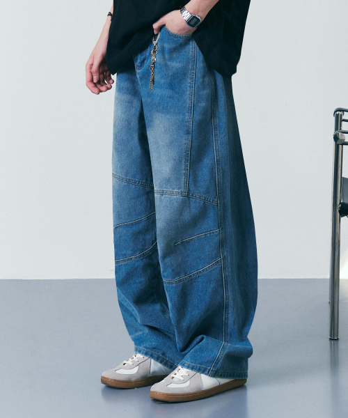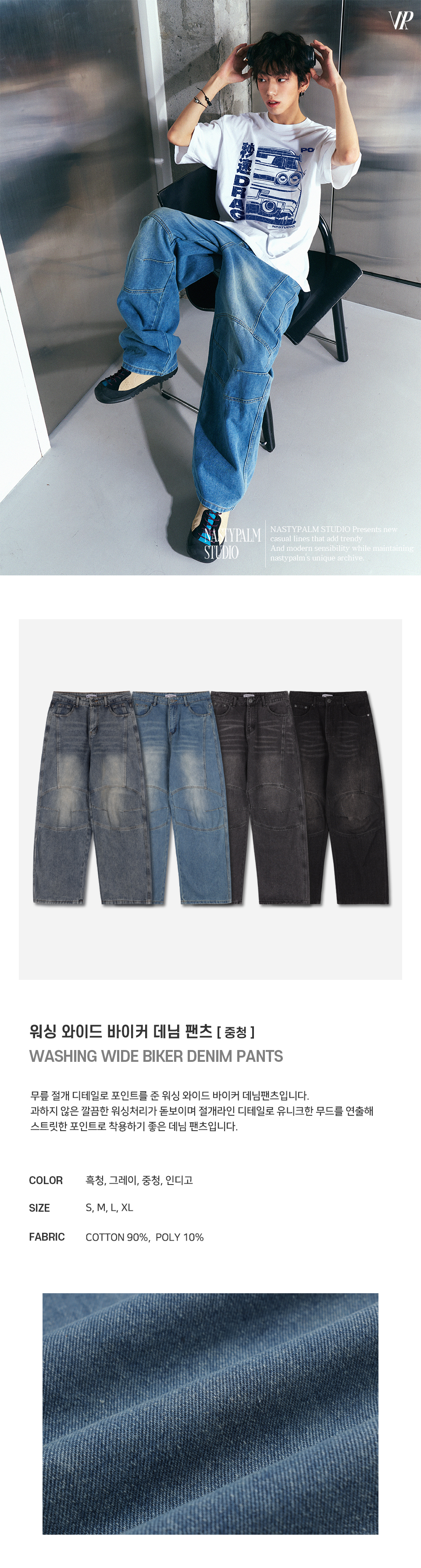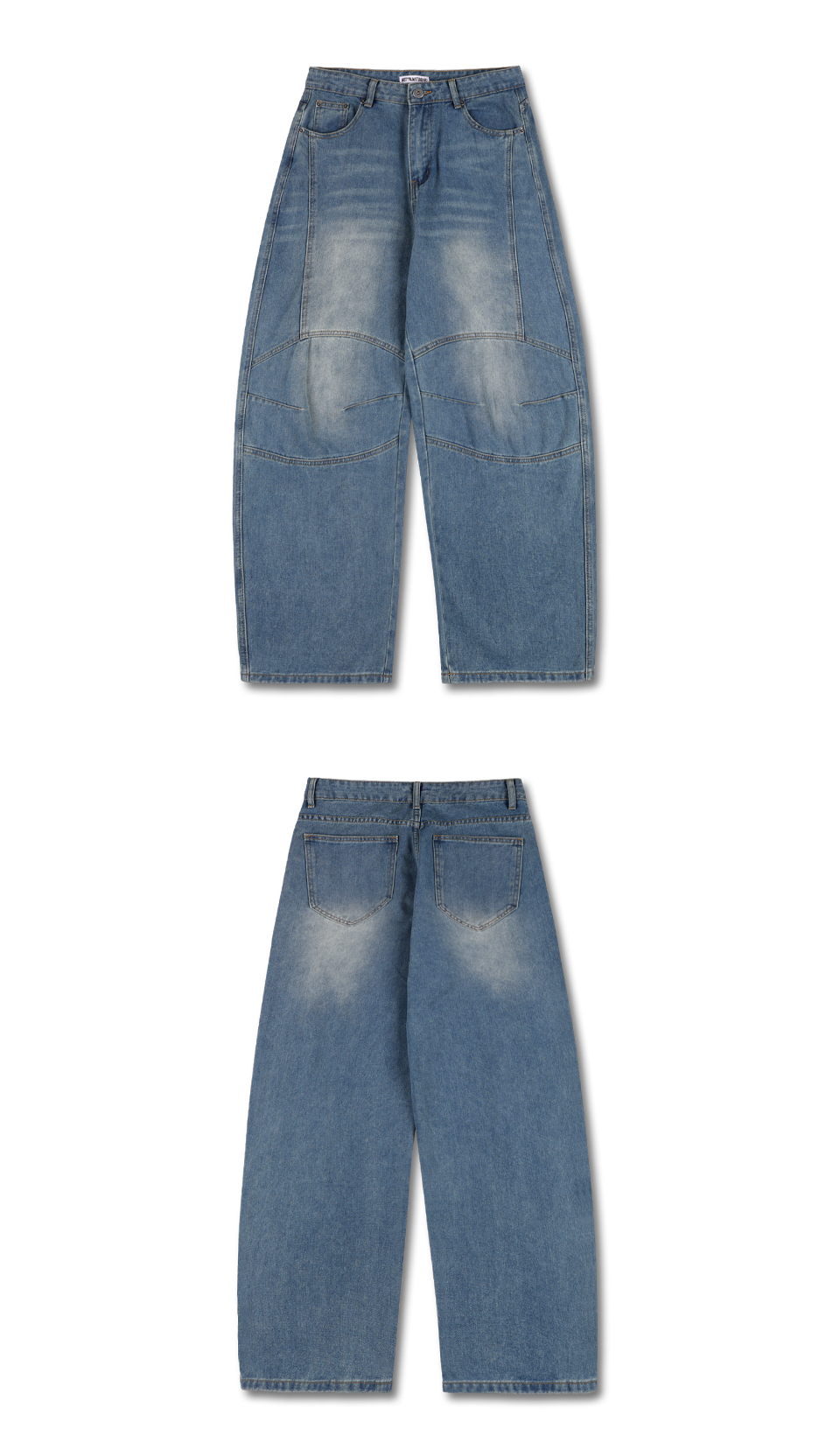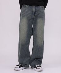 빈티지 네츄럴 워싱 와이드 데님 팬츠 연청