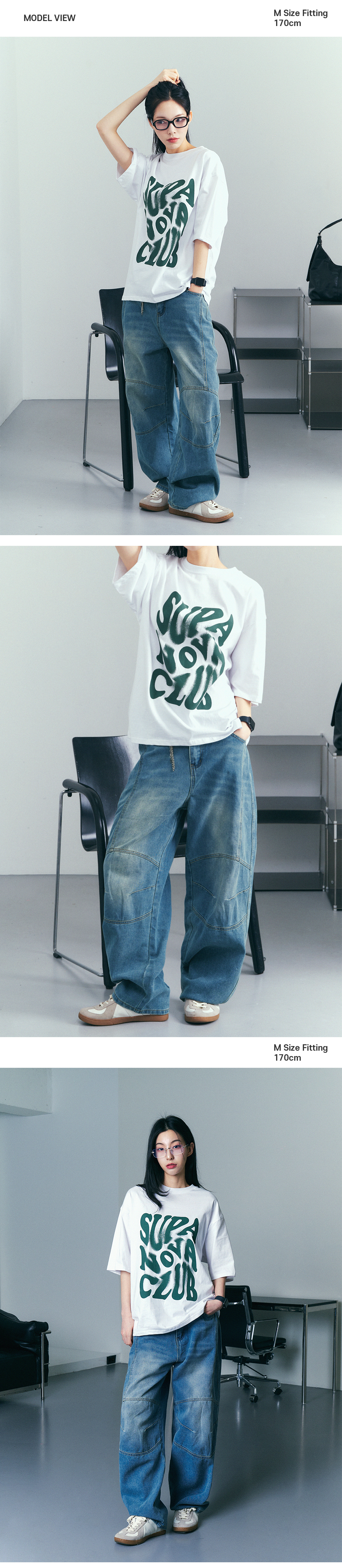 더블니 네츄럴 워싱 세미 와이드 데님 팬츠 중청