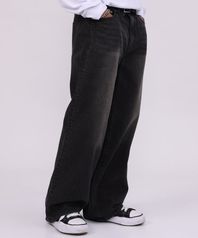 빈티지 네츄럴 워싱 와이드 데님 팬츠 흑청