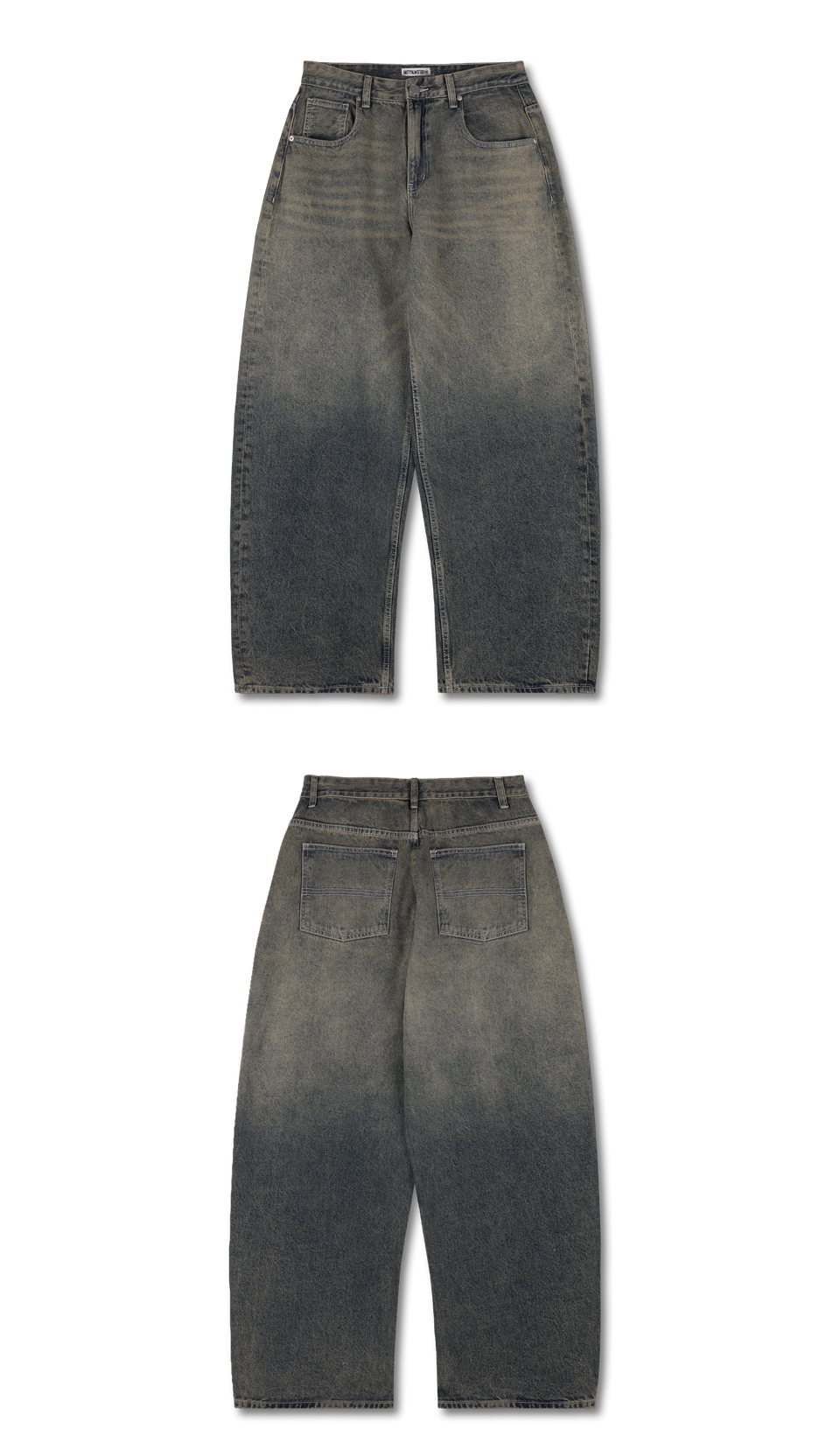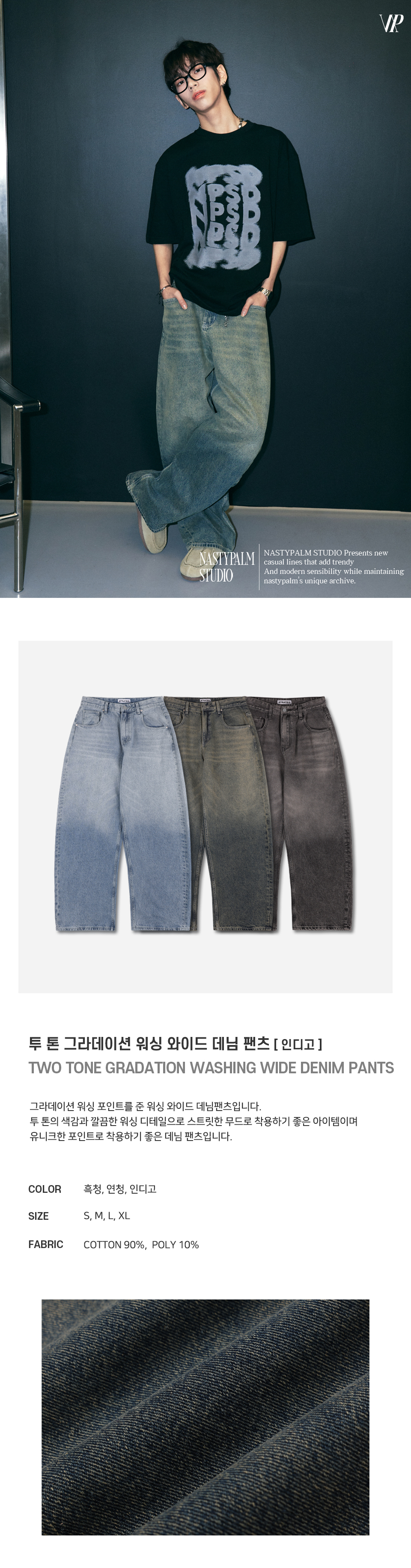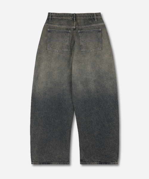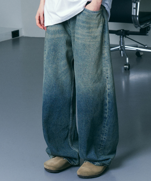 투 톤 그라데이션 워싱 와이드 데님 팬츠 인디고