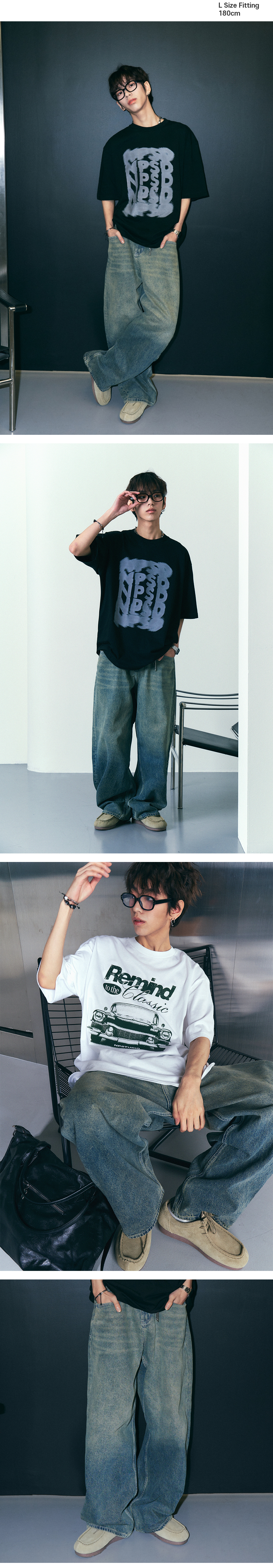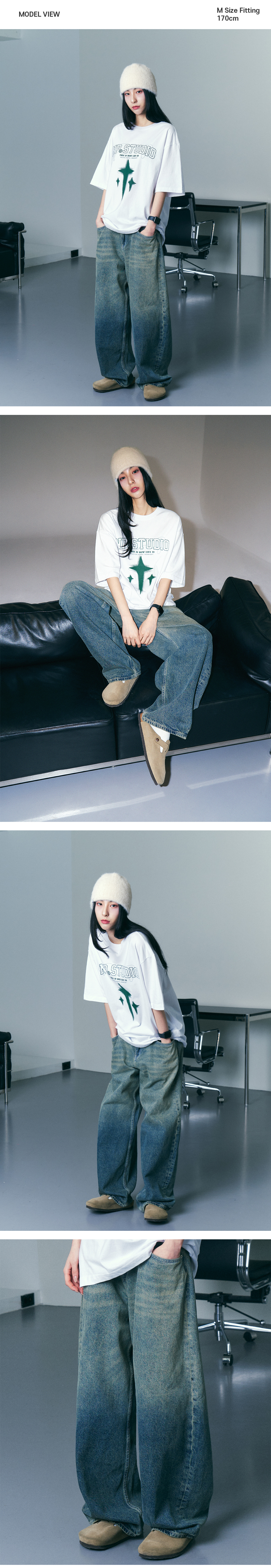 마빈 워싱 와이드 데님팬츠 중청