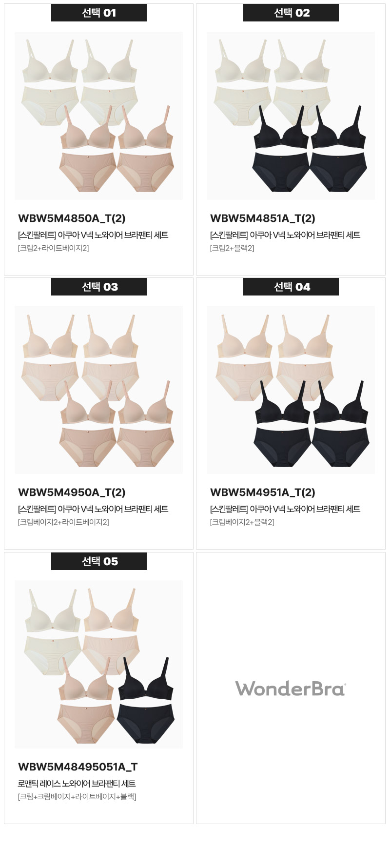 [4PACK][스킨팔레트] 아쿠아 V넥 노와이어 브라팬티 세트