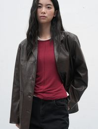 페이크 레더 싱글 자켓 [BROWN] / WBE3L09515