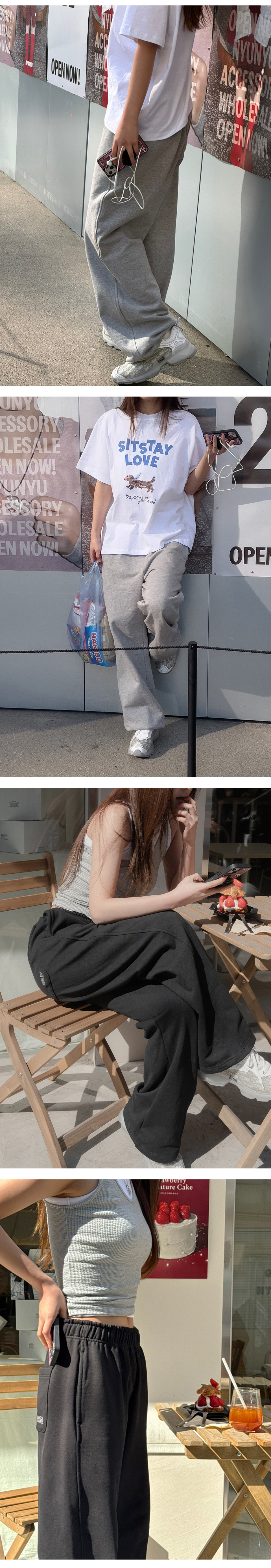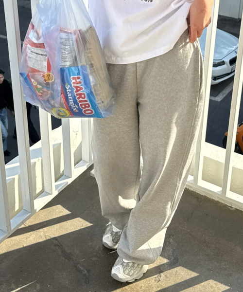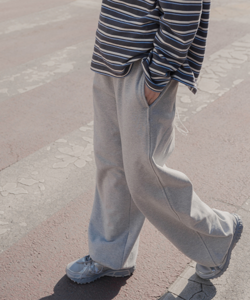 스트라이프 스웨트 스트링 밴딩 팬츠_블랙