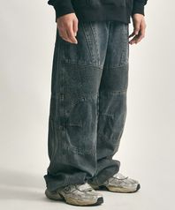 더티 워시드 바이커 와이드 팬츠(더티 블루)