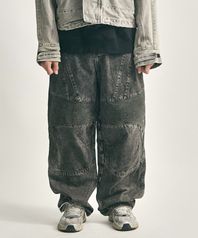 더티 워시드 바이커 와이드 팬츠(블랙)
