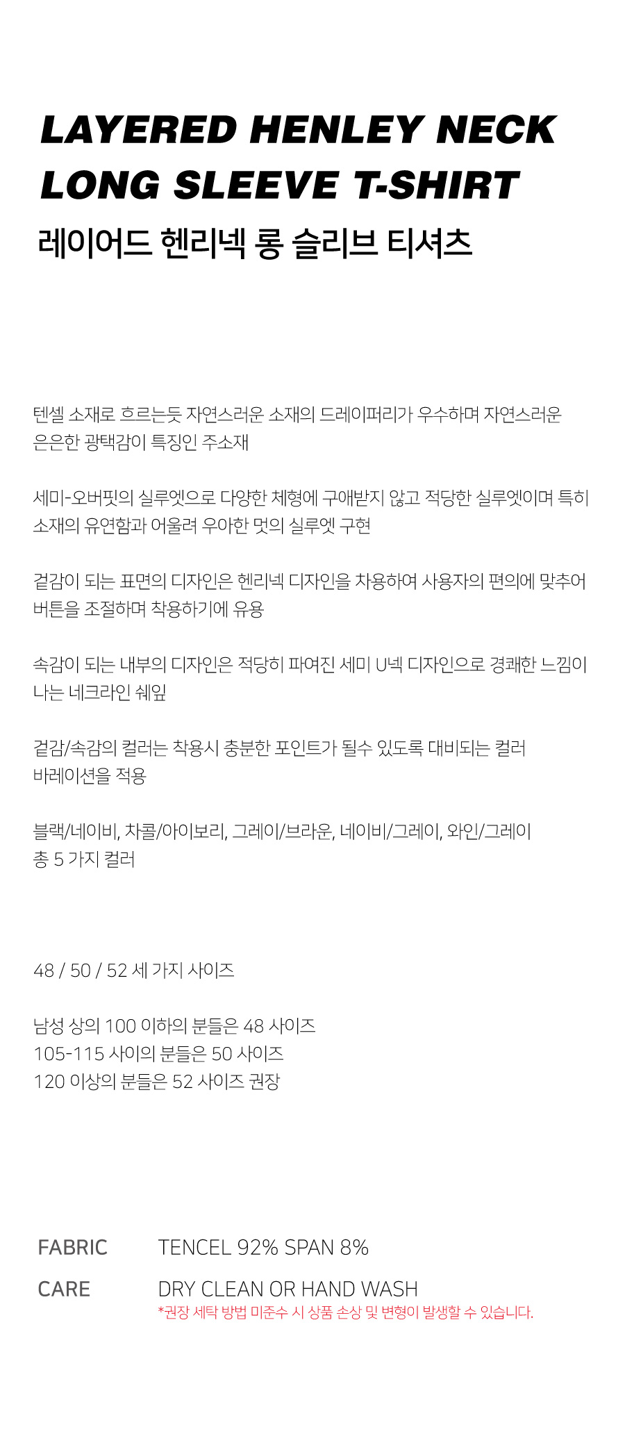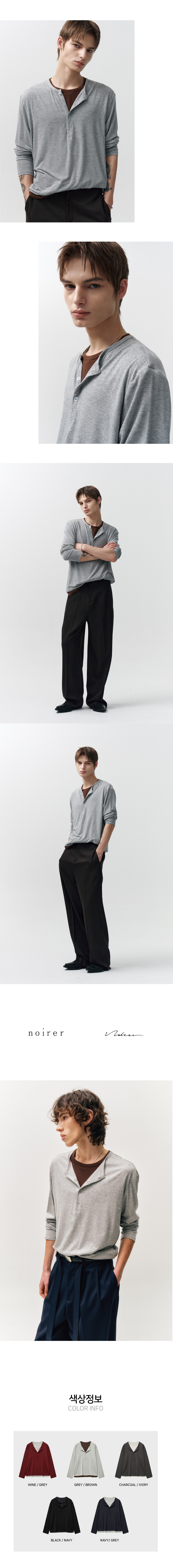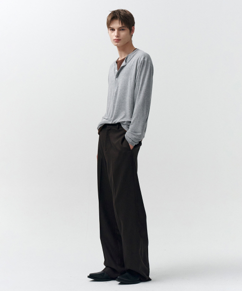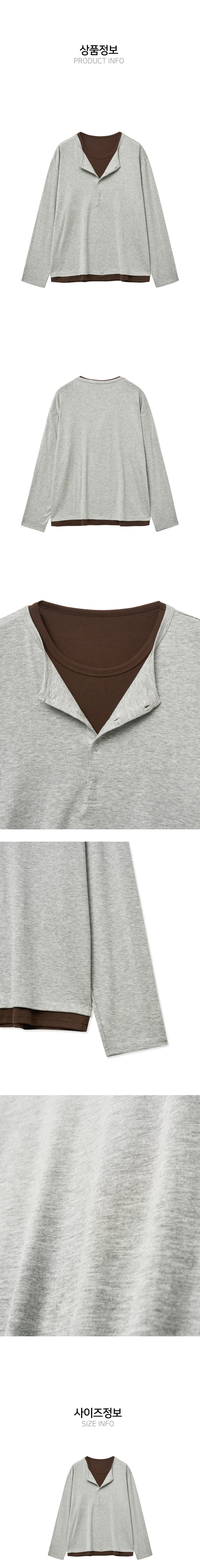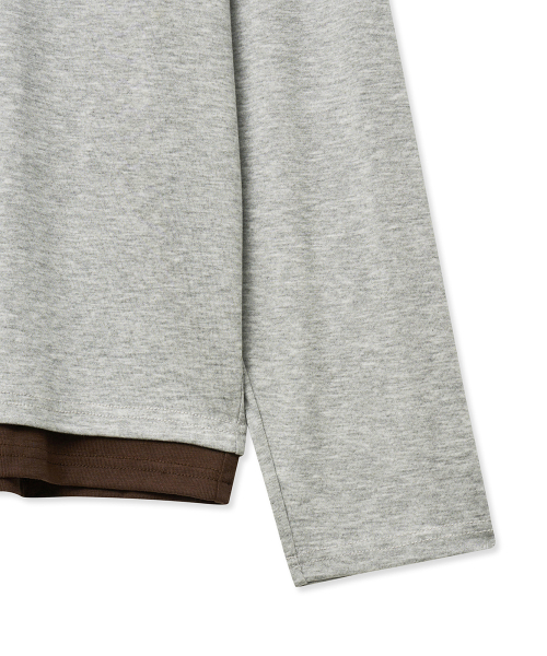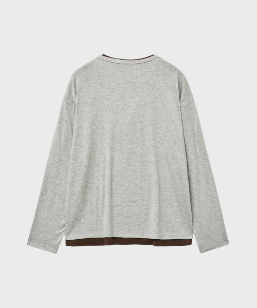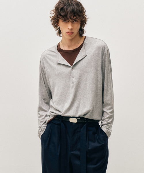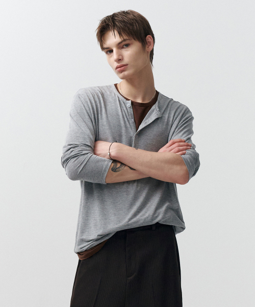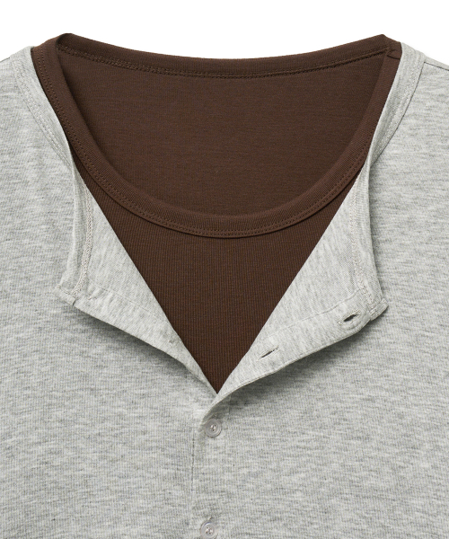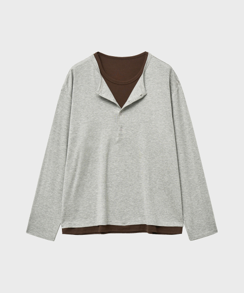 레이어드 헨리넥 롱 슬리브 티셔츠 (그레이브라운)