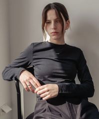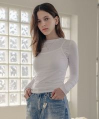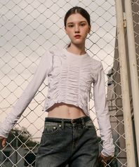 셔링 디테일 스트링 긴팔 티셔츠_화이트