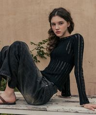 아일렛 보트넥 긴팔 티셔츠_블랙