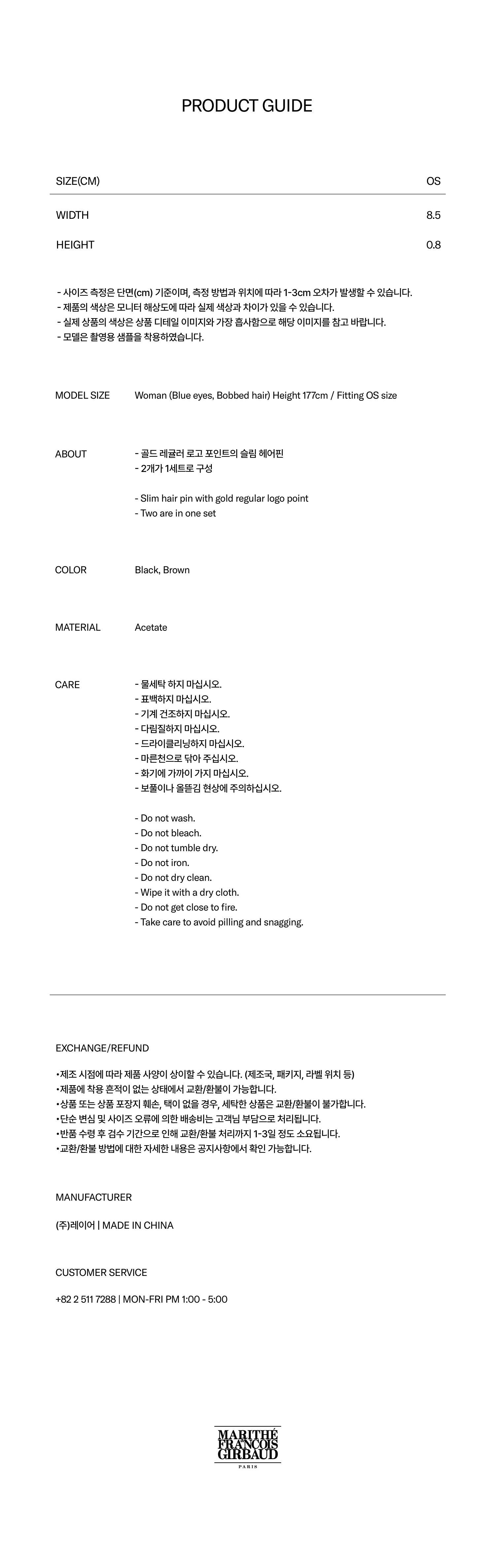 [고윤정 착용] REGULAR LOGO OVAL HAIR PIN brown