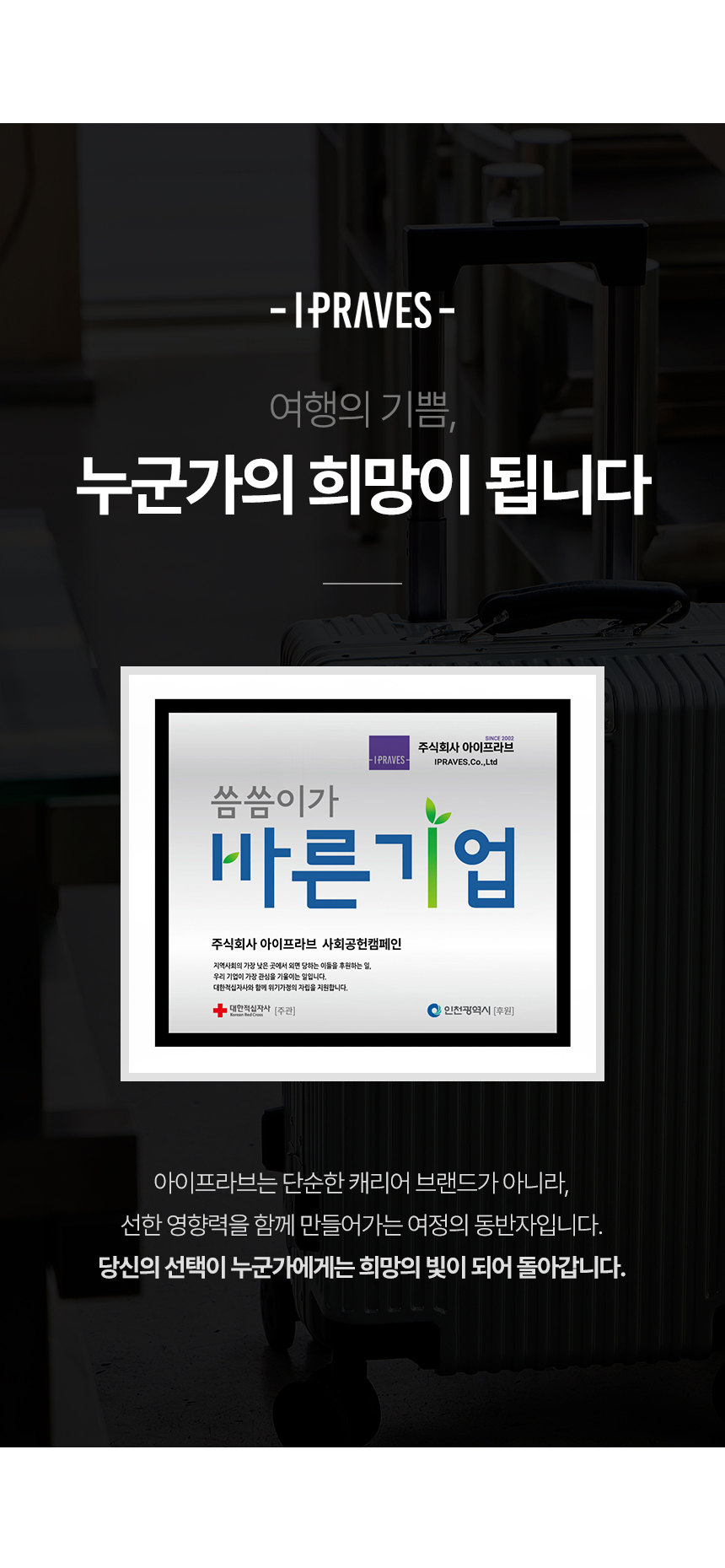 아이프라브(IPRAVES)는 여행 관련 상품을 판매하는 브랜드로, 고품질의 여행 가방 등을 직접 생산&제조하며 유통하는 브랜드입니다.