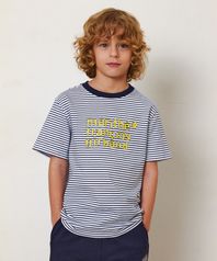 ENFANT FLOWER LOGO STRIPE RINGER TEE navy