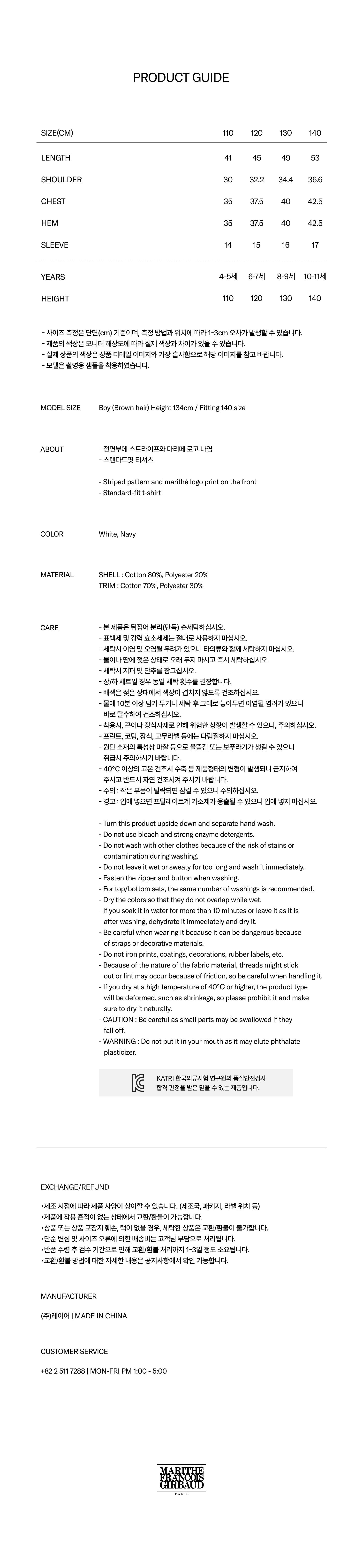 마리떼 키즈(MARITHÉ KIDS)는 마리떼 프랑소와 저버 특유의 프렌치 감성과 무드를 담은 키즈 라인. 마리떼 어덜트 라인과 함께 패밀리 룩을 연출할 수 있는 시그니처 아이템 미니 버전과, 아이들의 동심을 닮은 그래픽이 특징입니다.