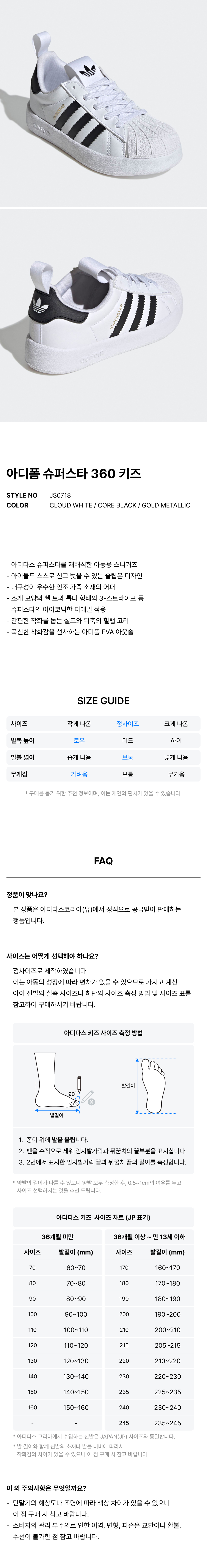 아디폼 슈퍼스타 360 키즈 - 화이트 / JS0718