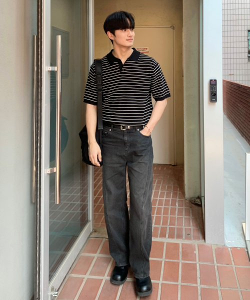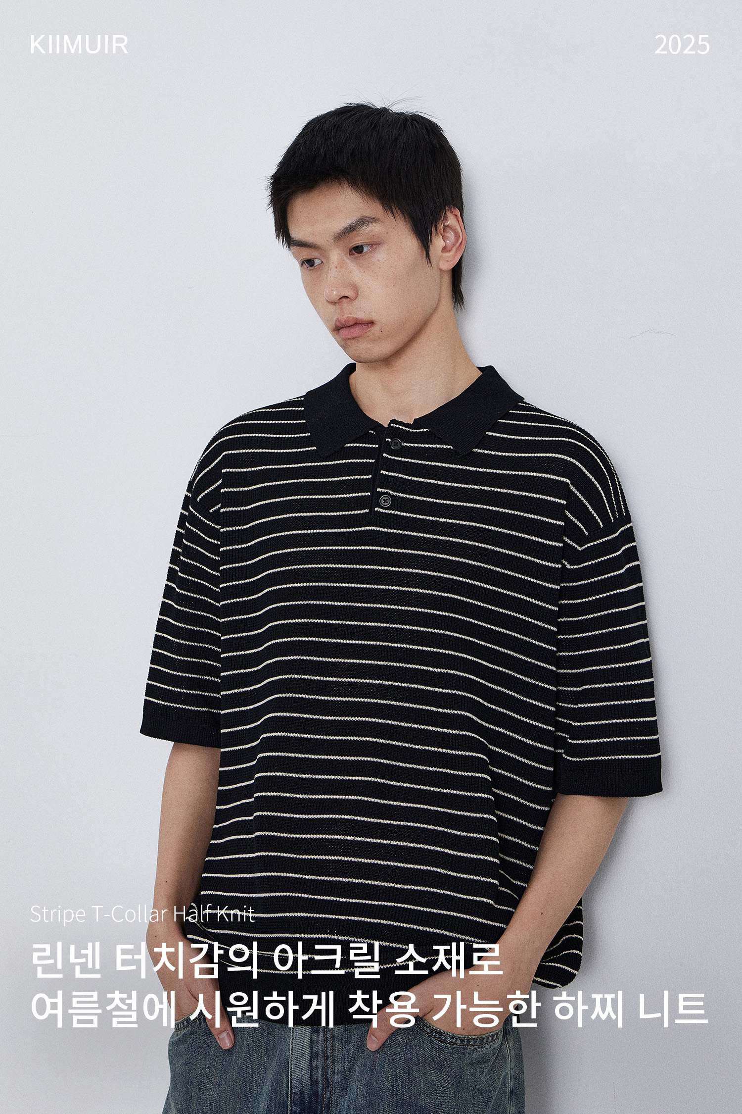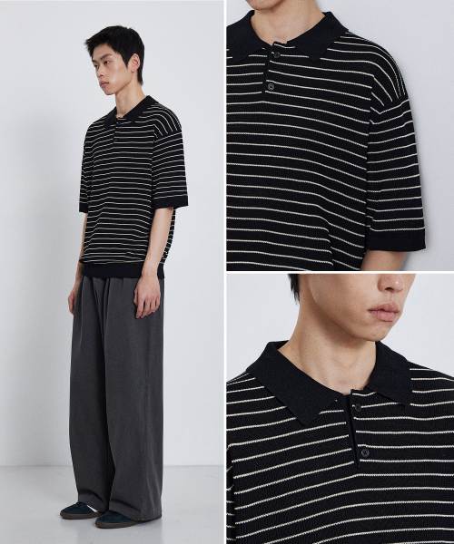 스트라이프 티에리 하프 니트_블랙