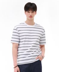 공용 스트라이프 반팔 티셔츠-화이트