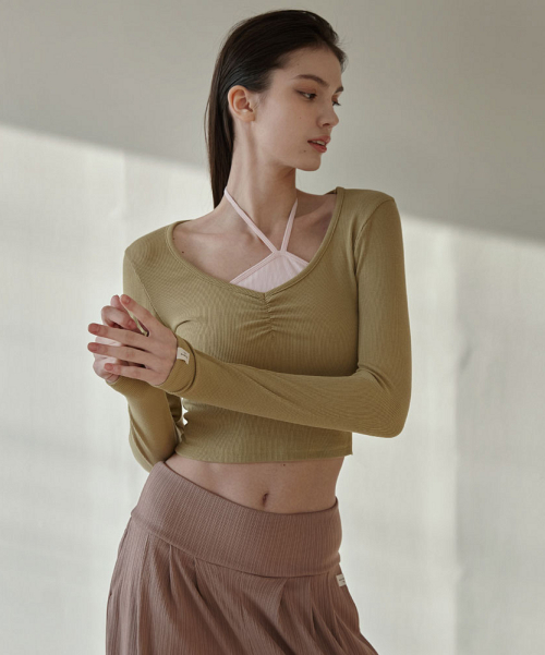 여성 요가복 DEVI-T0126-올리브 필라테스 줄리 셔링 롱슬리브