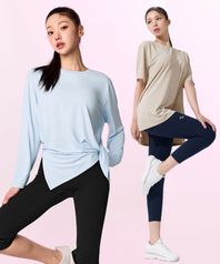 여성 요가복 DEVI-T0126-크림레몬 필라테스 줄리 셔링 롱슬리브