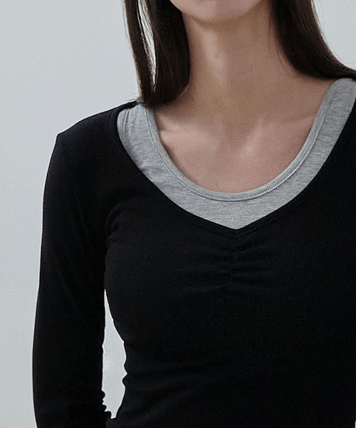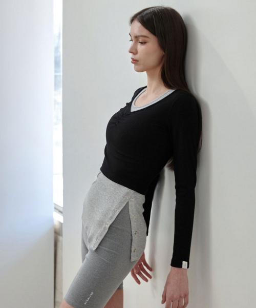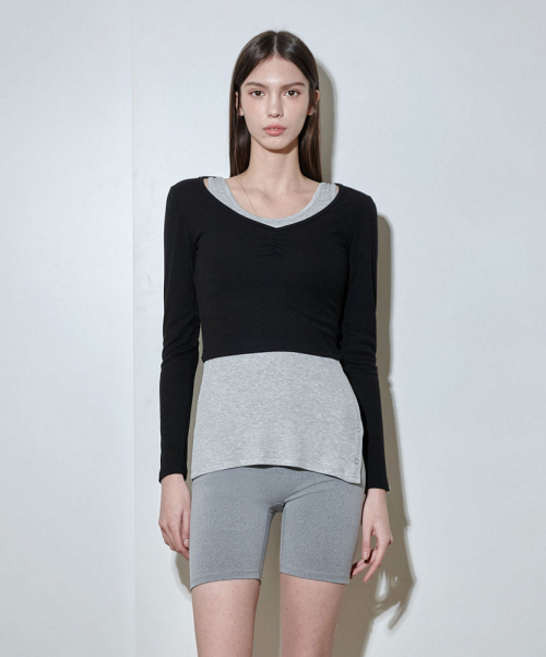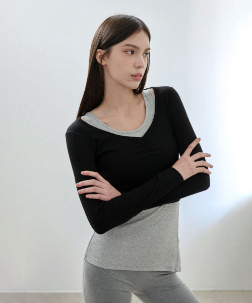 여성 요가복 DEVI-T0126-블랙 필라테스 줄리 셔링 롱슬리브