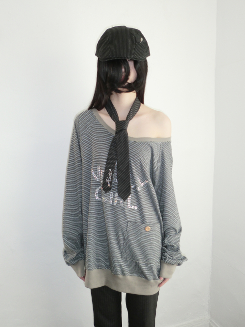 버튼 스트라이프 레이스 탱크 탑 (라이트그레이)
