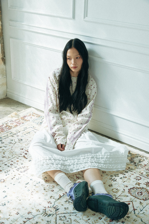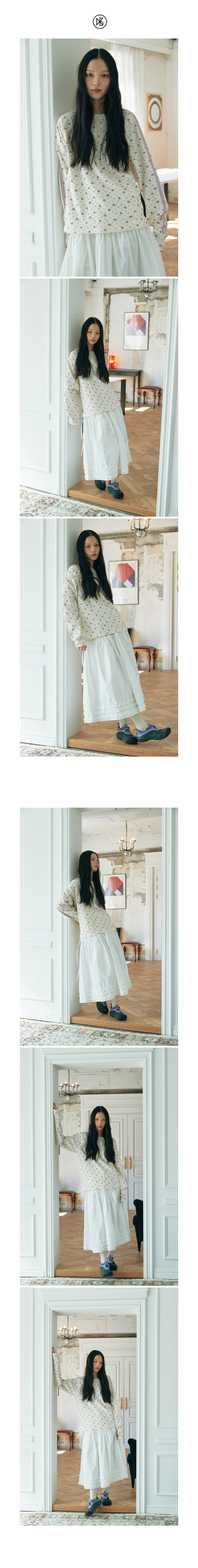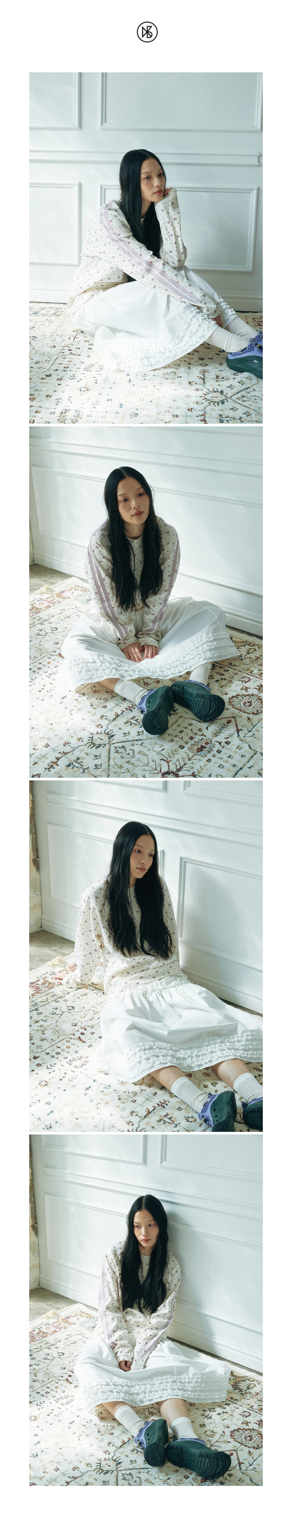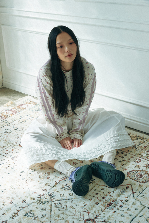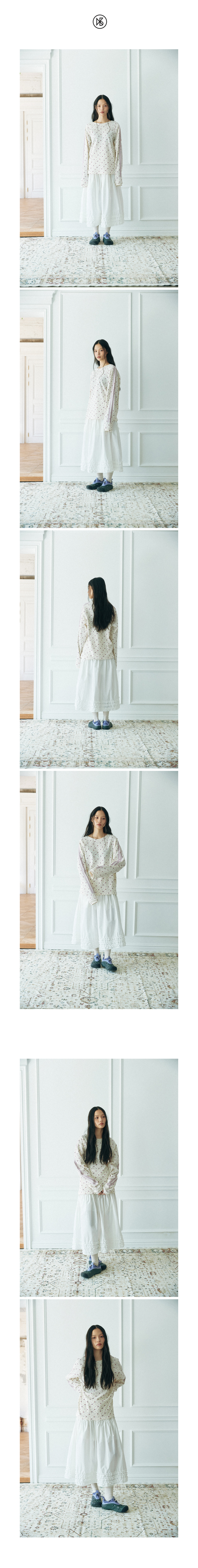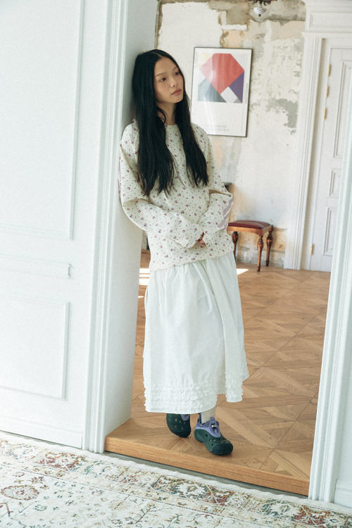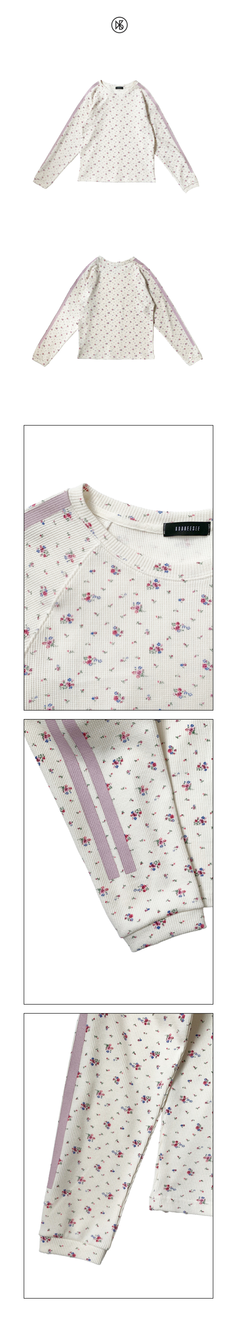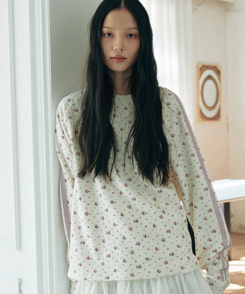 와플 래클런 슬리브 티셔츠_플라워_아이보리