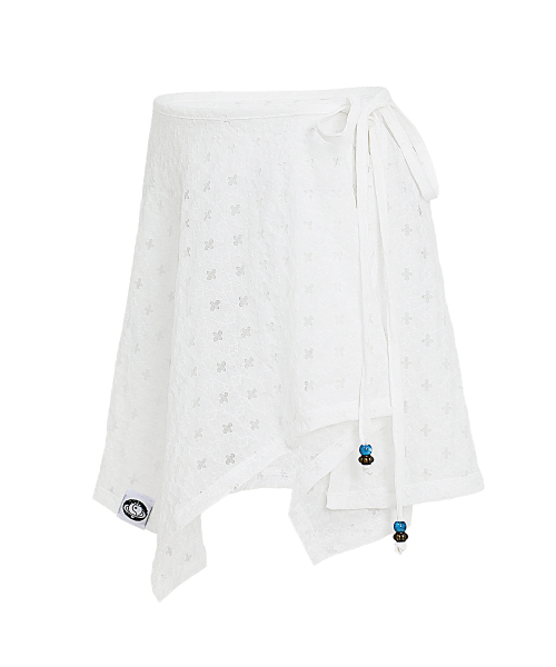 레이어드 랩스커트. 언발란스 플레어 라인의 랩스커트로 구슬포인트.