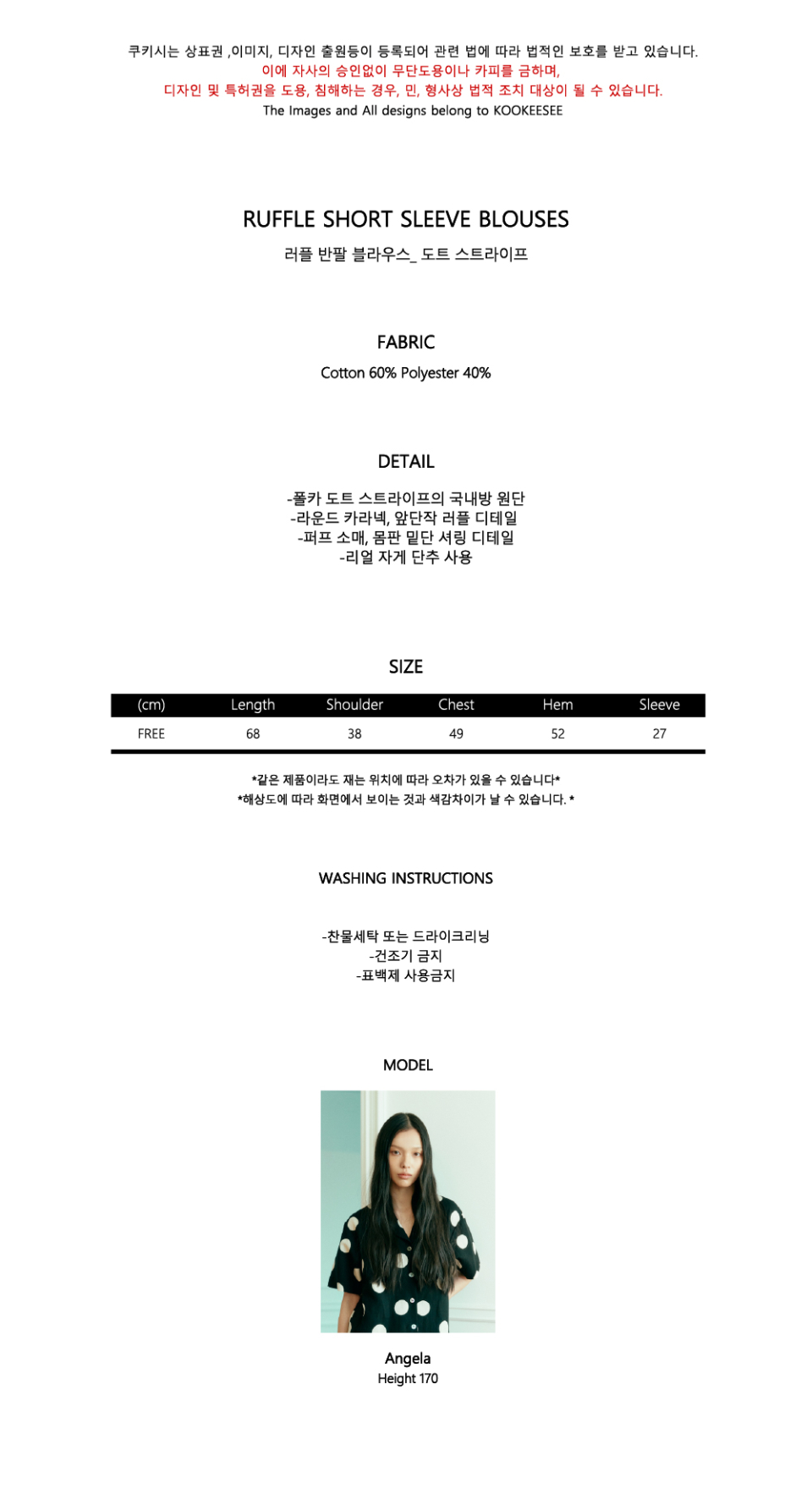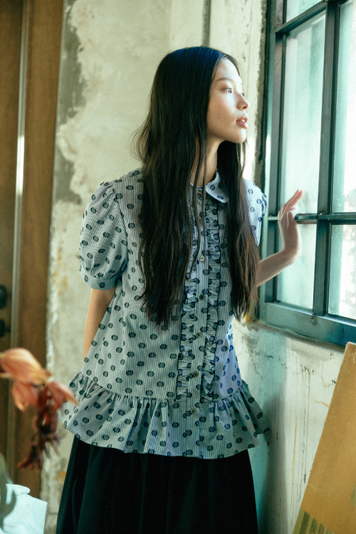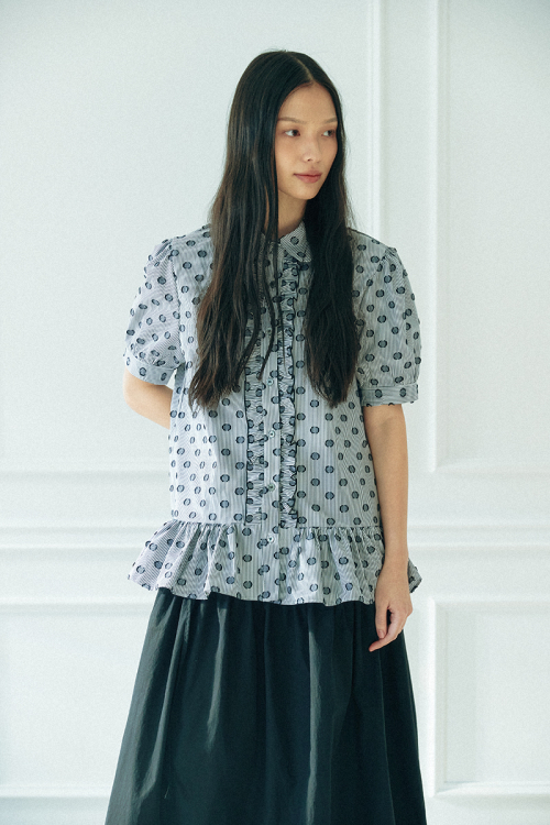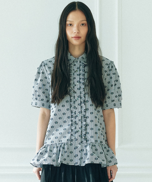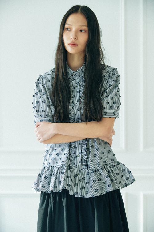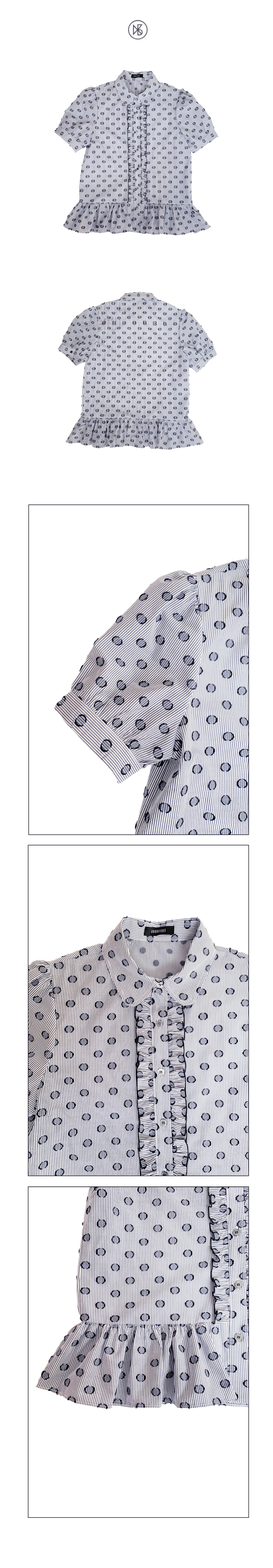 러플 반팔 블라우스_ 도트 스트라이프
