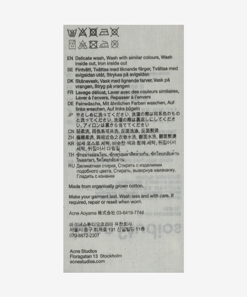ACNE STUDIOS(아크네 스튜디오)는 컨템포러리한 토탈 유럽 브랜드입니다. 조니 요한슨에 의해 창립되었으며 현재까지 큰 사랑을 받고 있는 브랜드입니다.