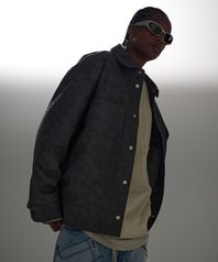 데님 라이크 오버핏 페이크 레더 셔츠 자켓 (그레이)