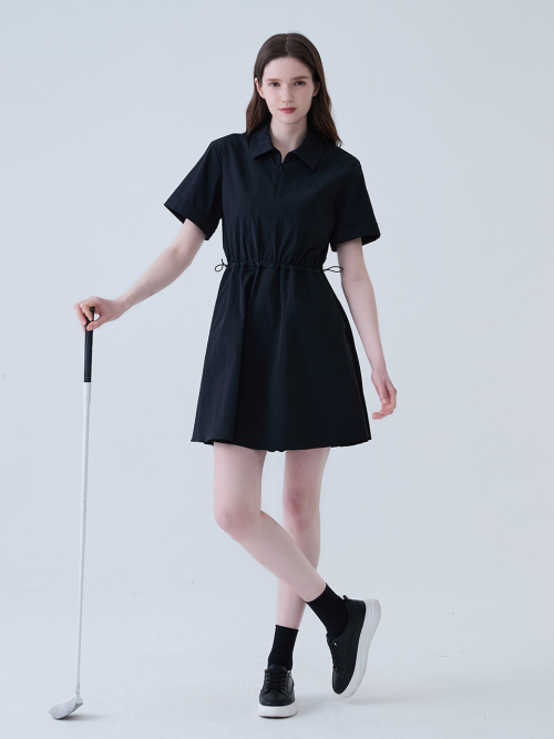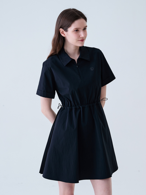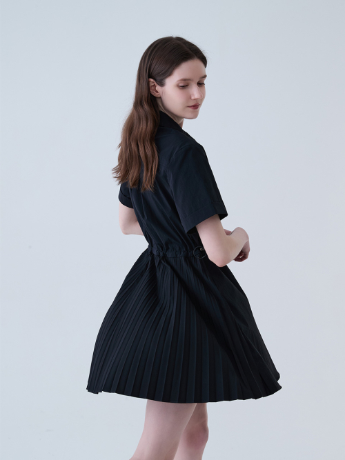 백 플리츠 나일론 원피스 BLACK