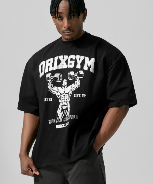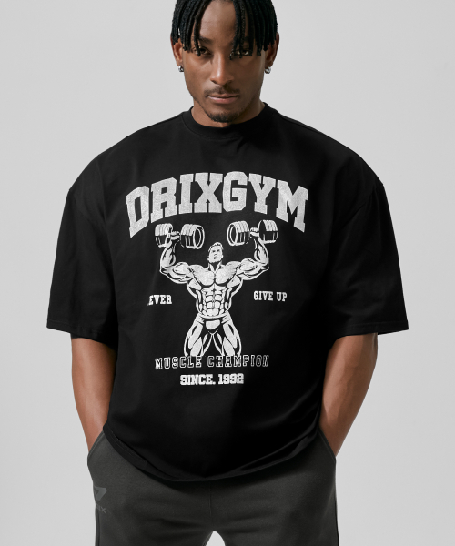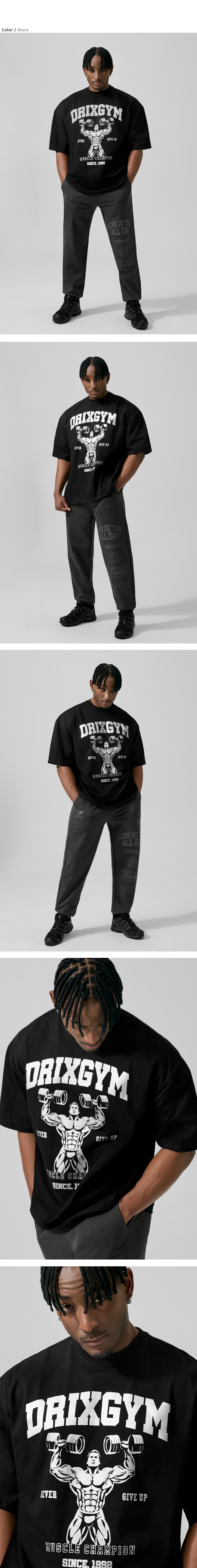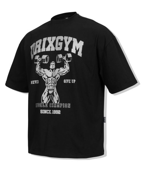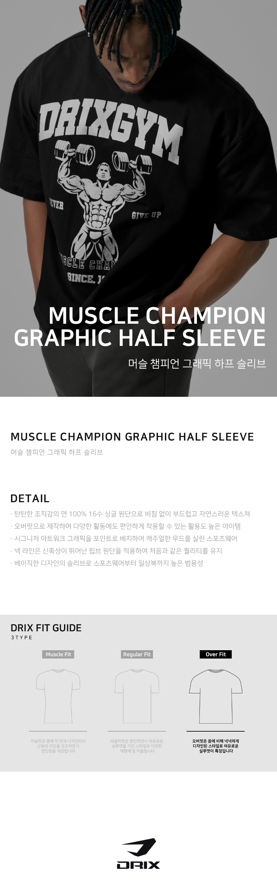 머슬 챔피언 그래픽 하프 슬리브_블랙