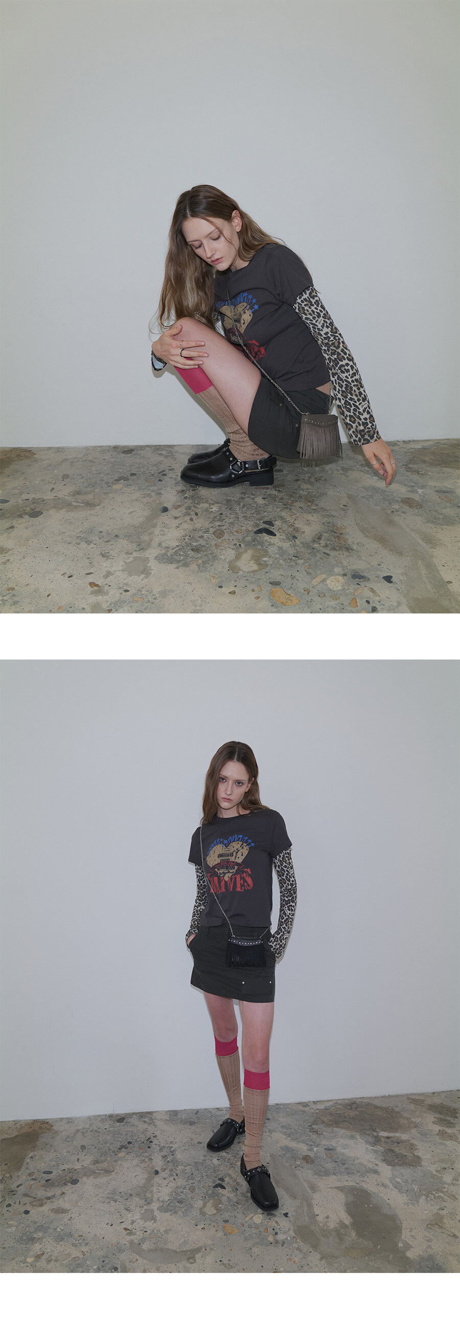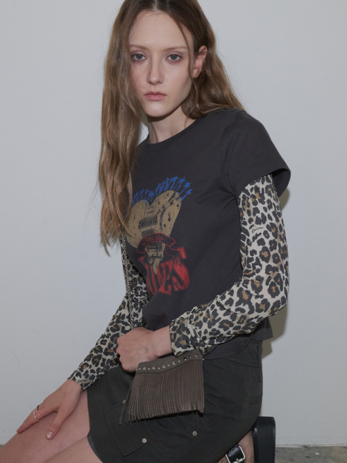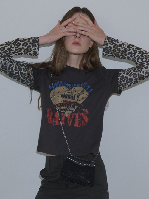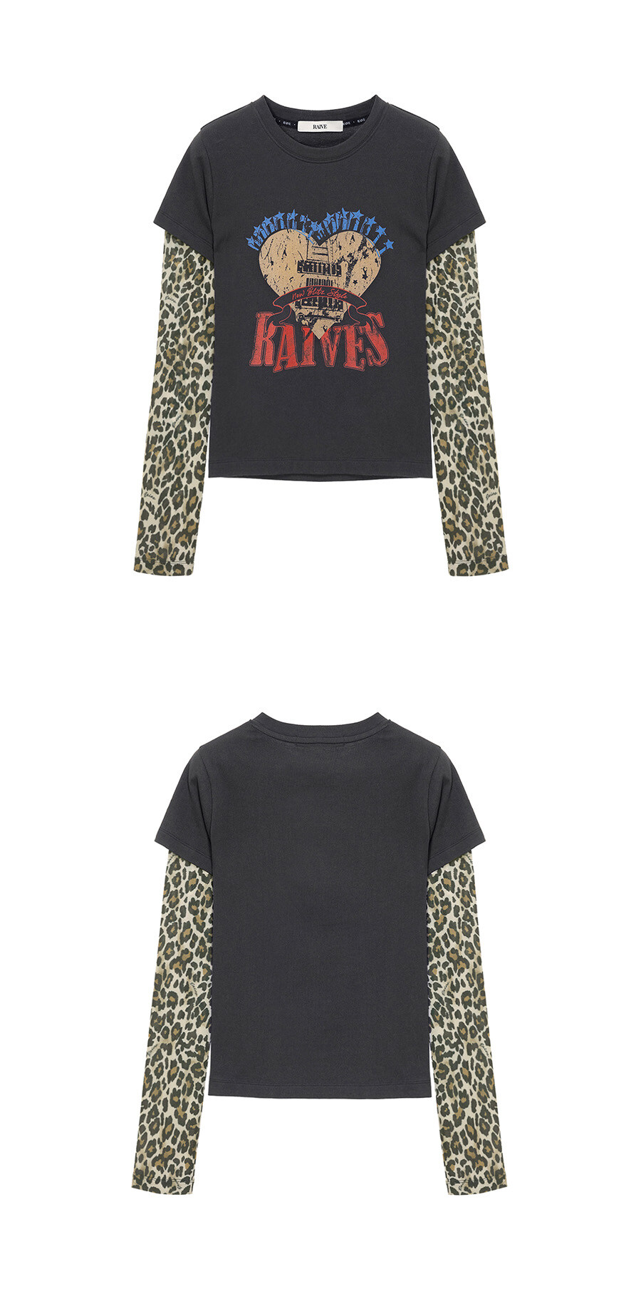 Leopard Heart Ravers Layered T-Shirt in Charcoal VW5SE512-9E