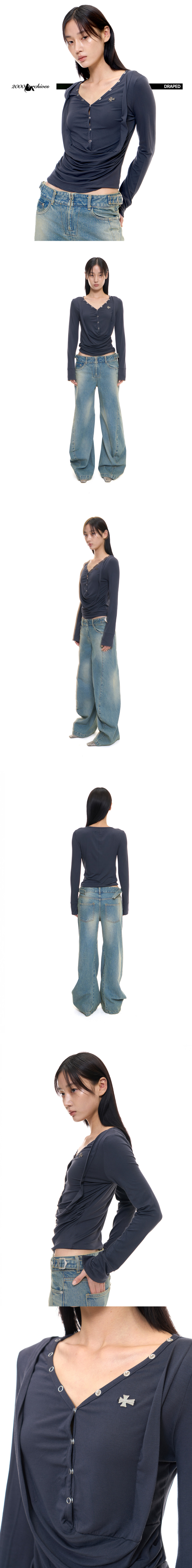 DRAPED HENLEY TOP (CHARCOAL)