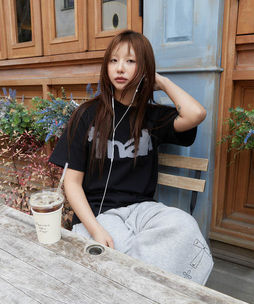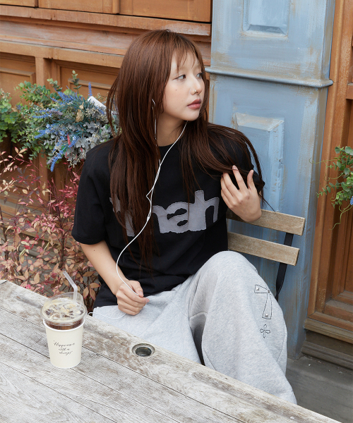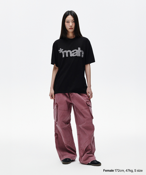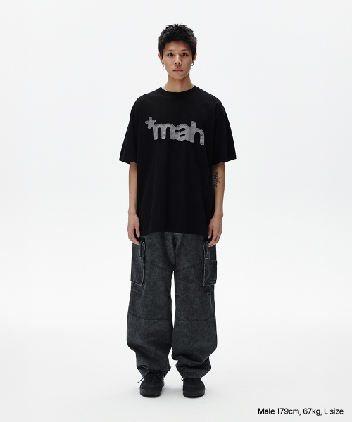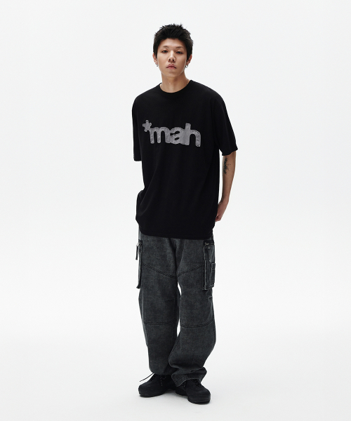mah CUT OFF APPLIQUE TEE BLACK(MG2FMMT523A)