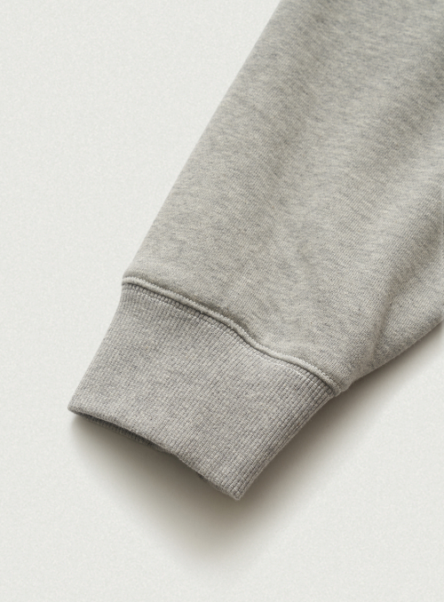 밑단 립 조직과 캥거루 포켓 등 실용적인 디테일