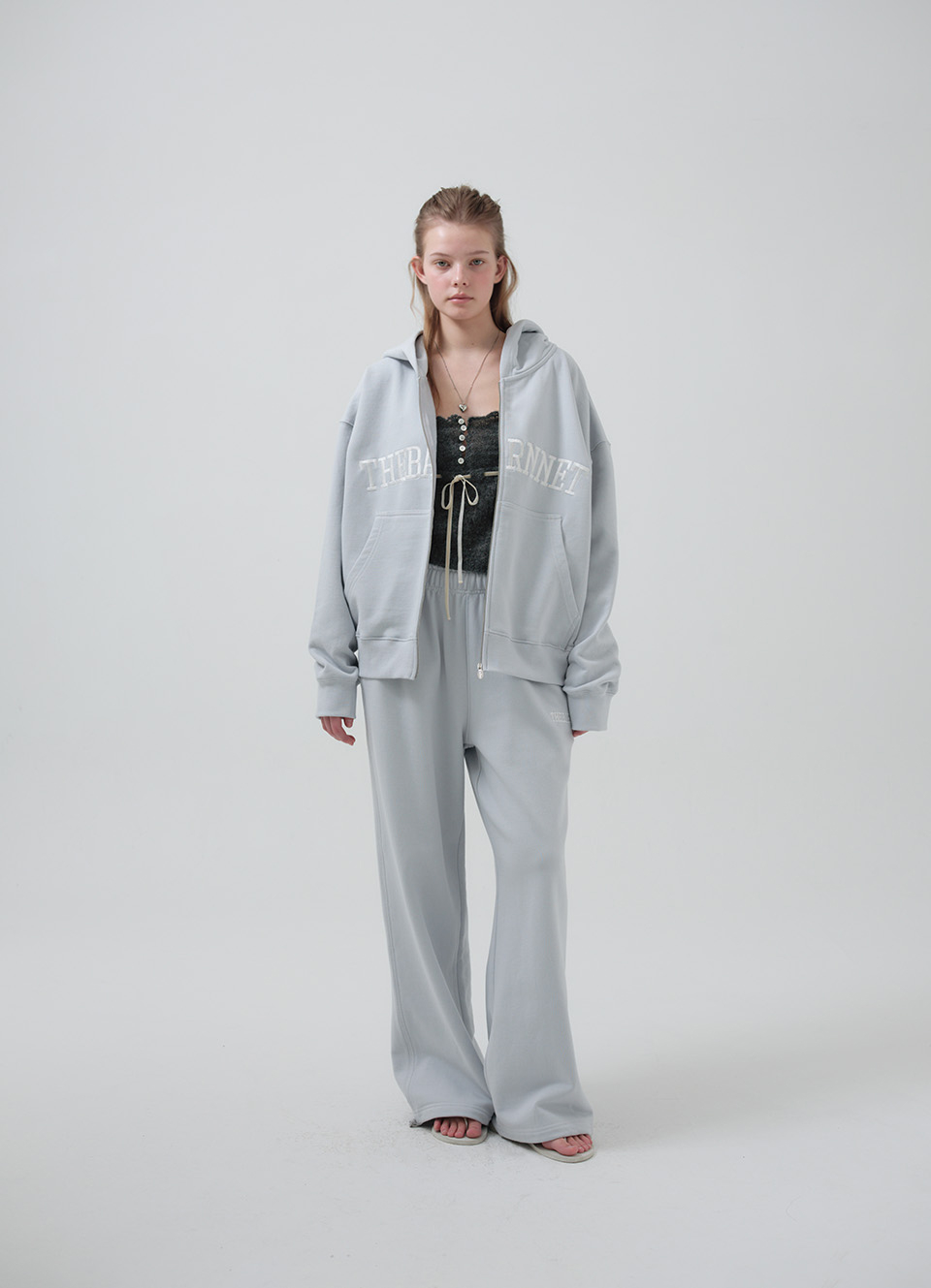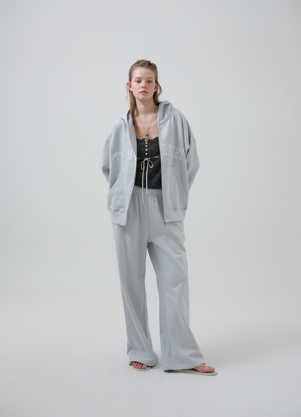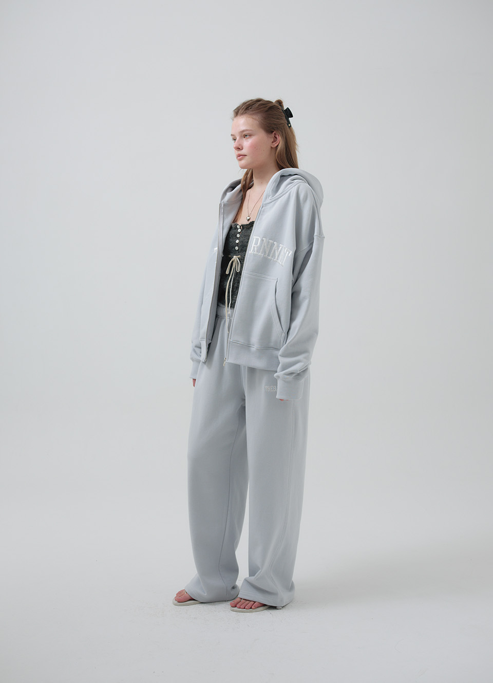 패브릭 컬러와 대비되는 아이보리 스티치 마감과 배색 로고 자수 포인트