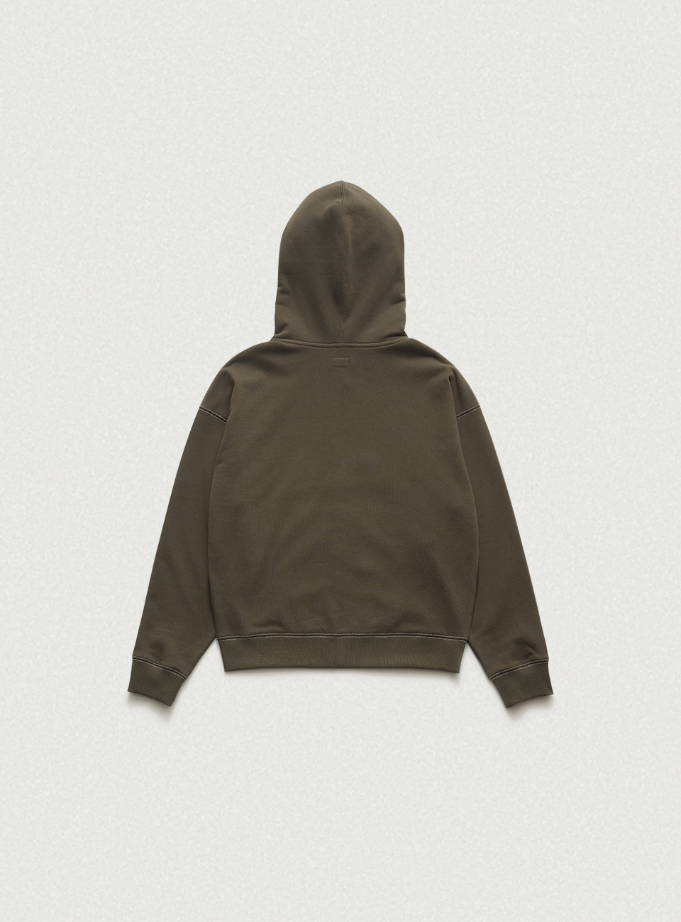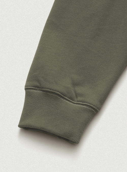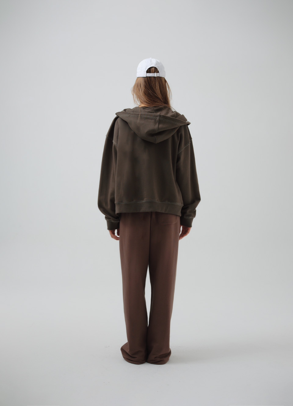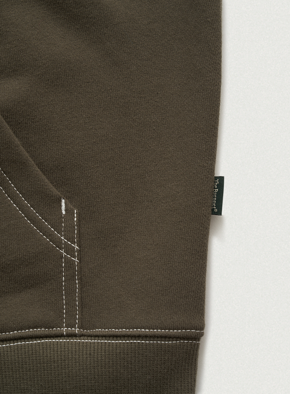 밑단 립 조직과 캥거루 포켓 등 실용적인 디테일
