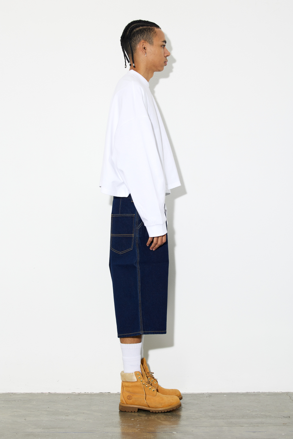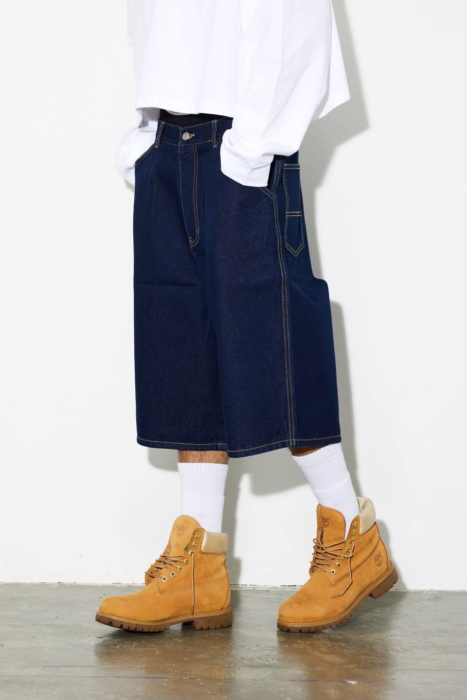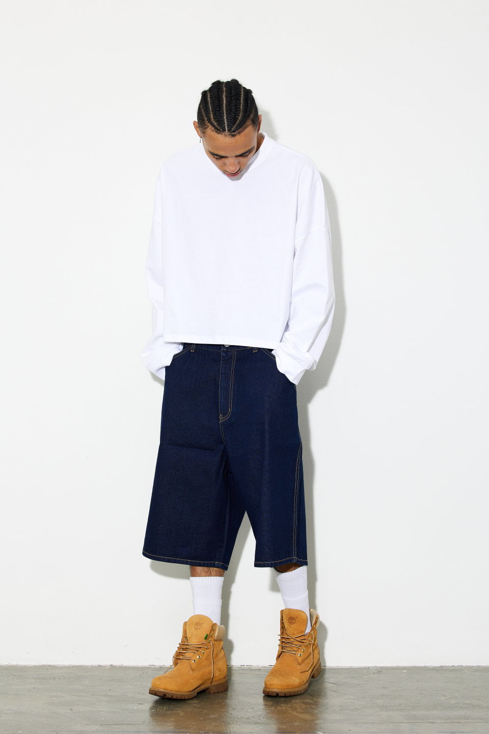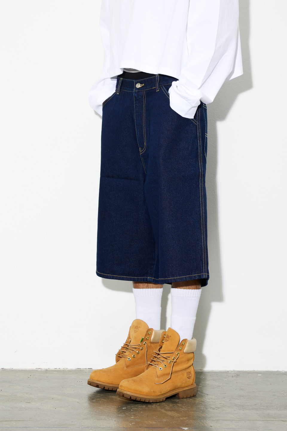 1.정강이가지 내려오는 버뮤다핏의 데님 숏팬츠 입니다.