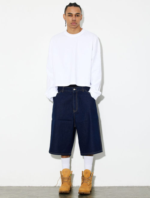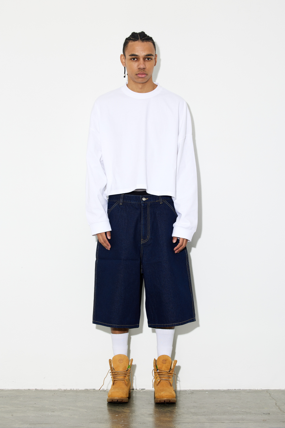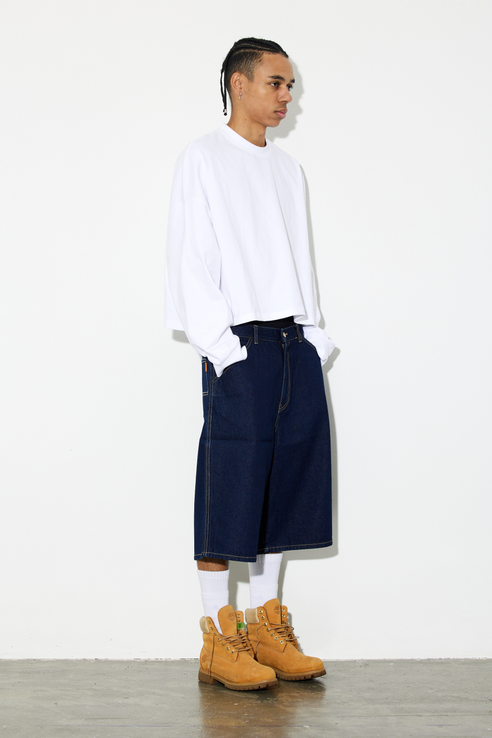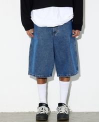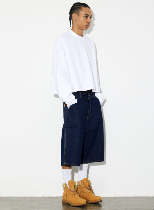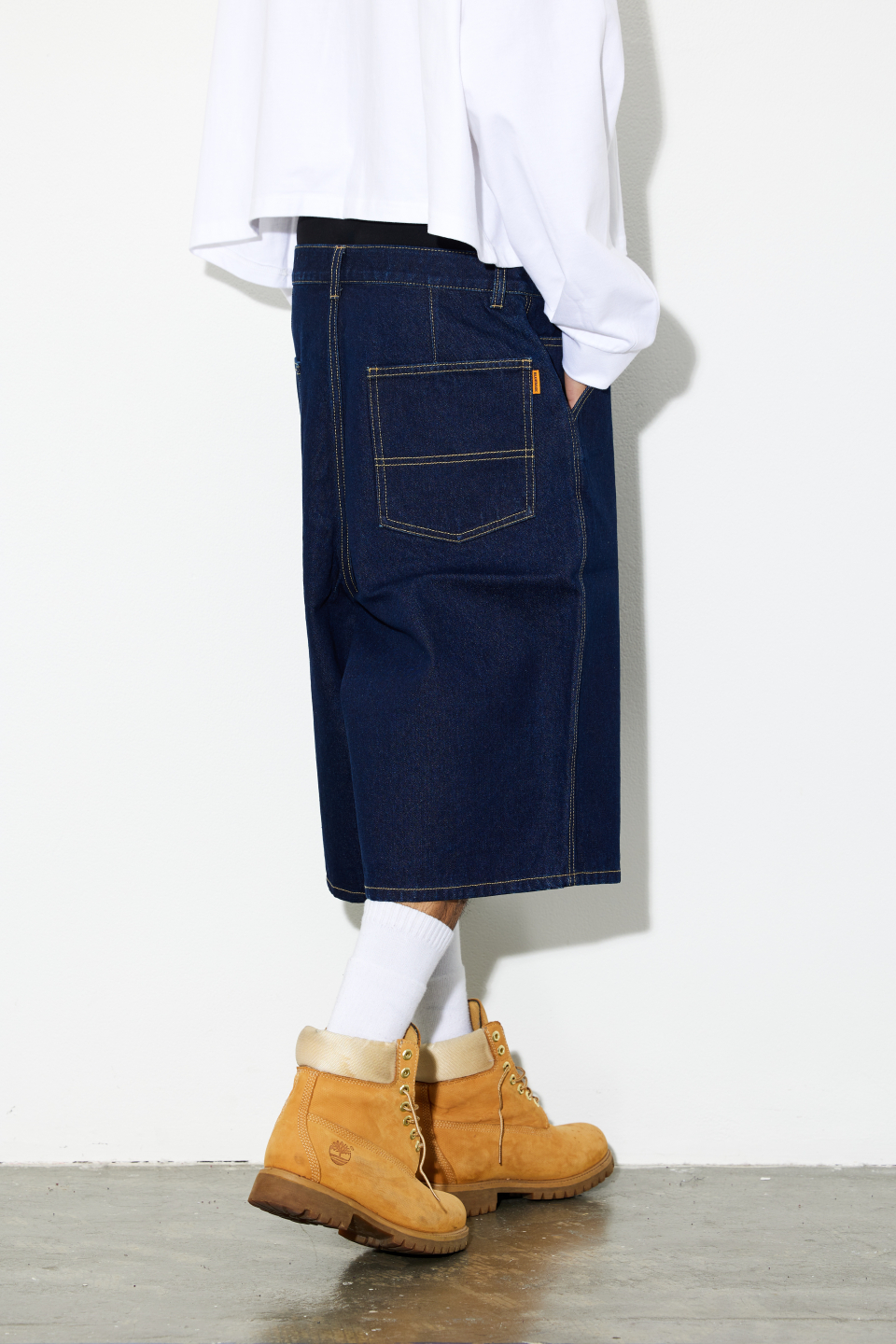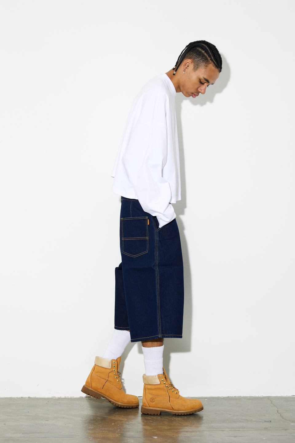 1.정강이가지 내려오는 버뮤다핏의 데님 숏팬츠 입니다.