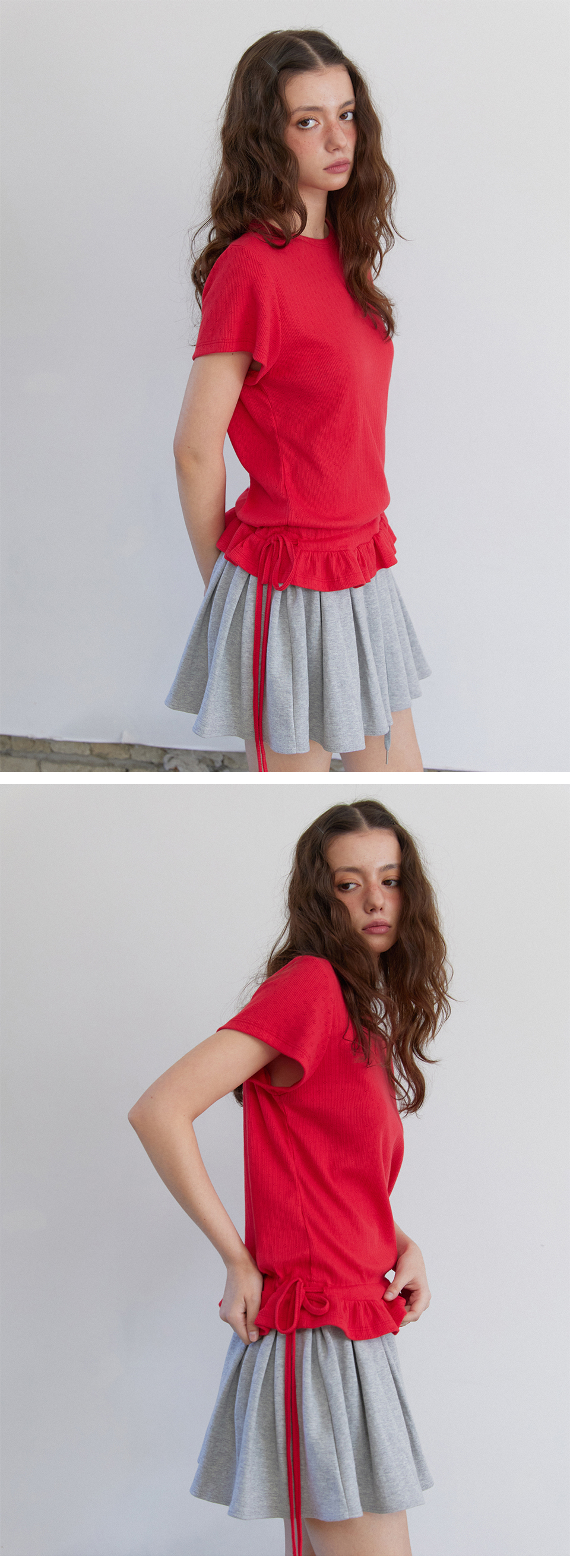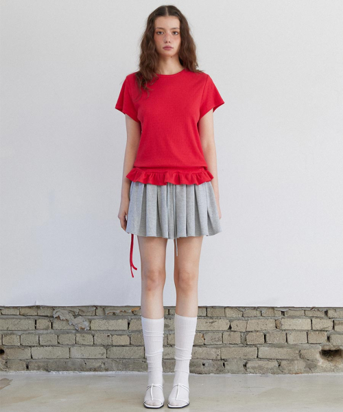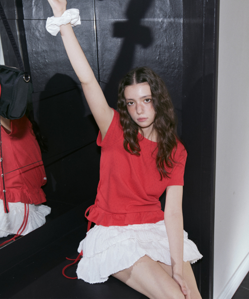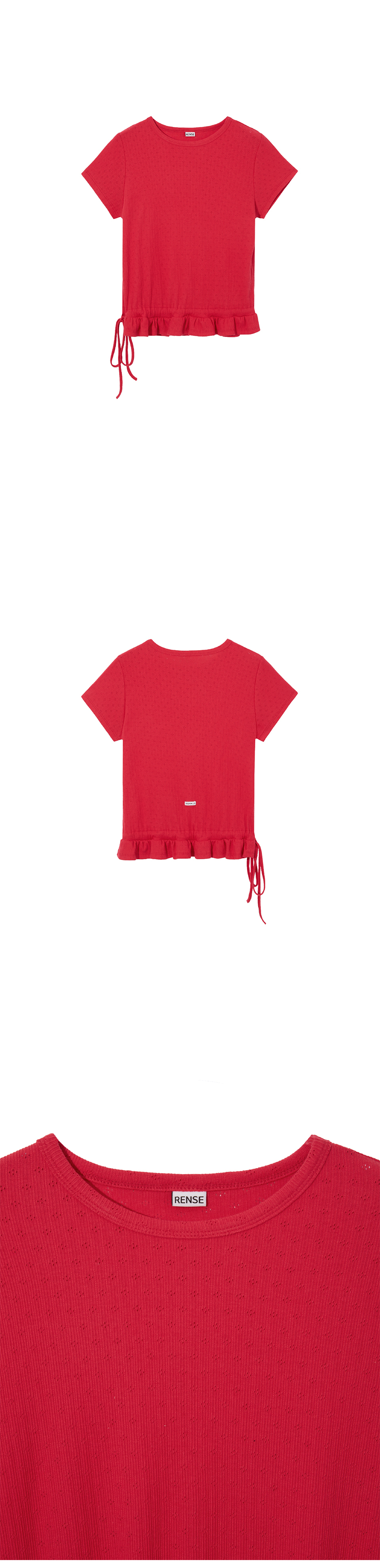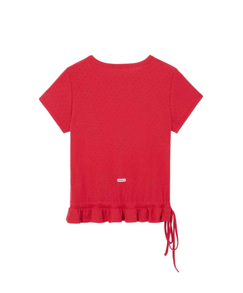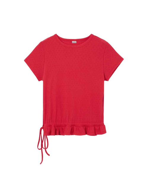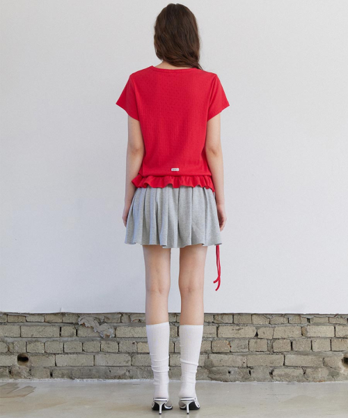 Eyelet Frill Half T-shirt Red