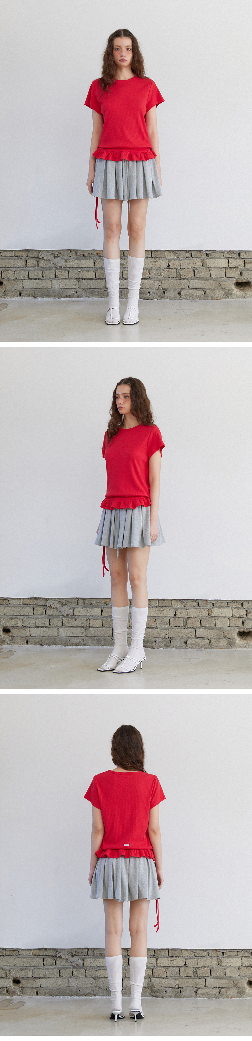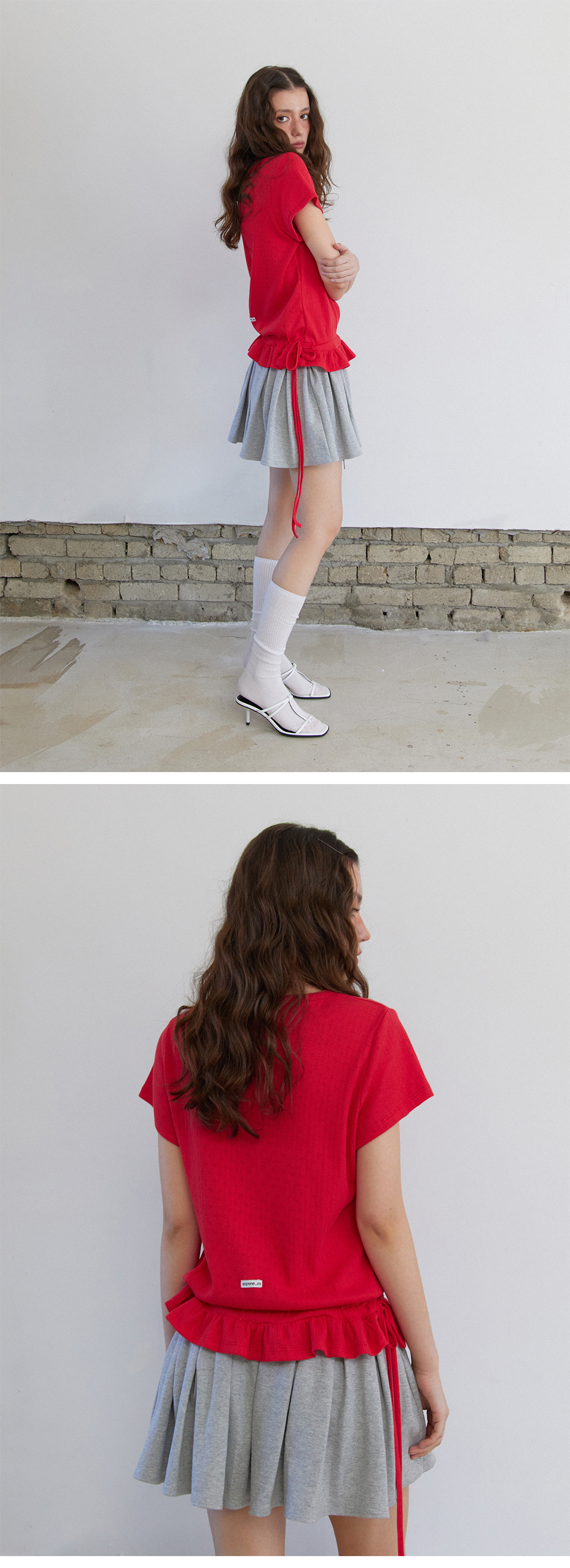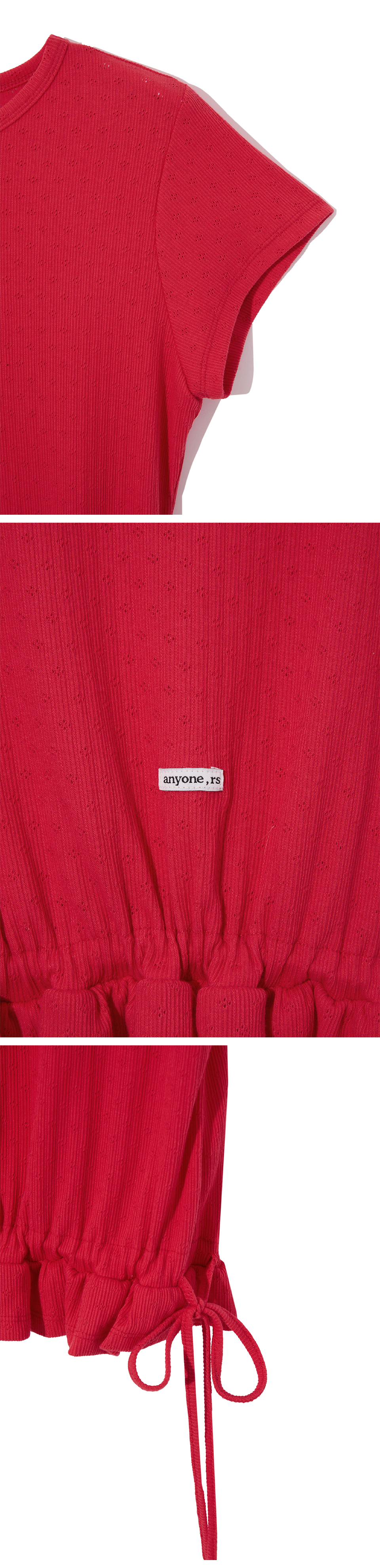 Eyelet Frill Half T-shirt Red