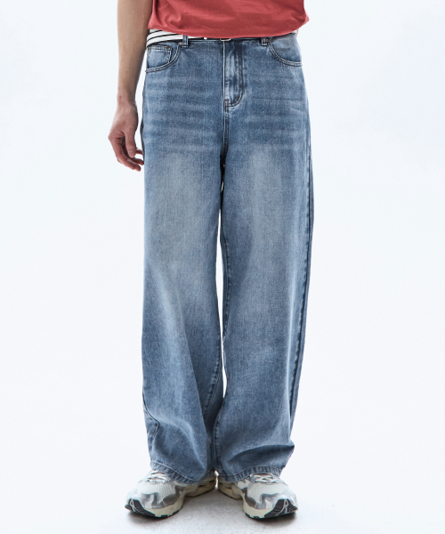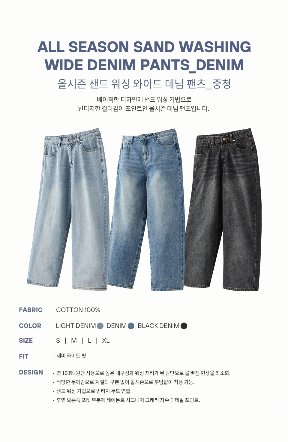 올시즌 샌드 워싱 와이드 데님 팬츠_중청