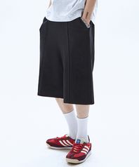 빅 패치 버뮤다 와이드 밴딩 스웨트 팬츠_블랙