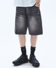 갤러리 클럽 워싱 데님 버뮤다 하프 팬츠_흑청