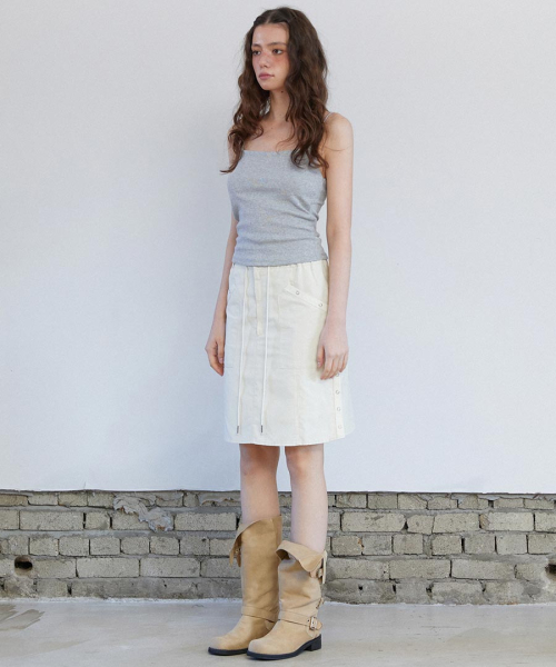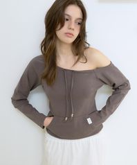 레터즈 오프숄더 포켓 티셔츠 ( 챠콜 )