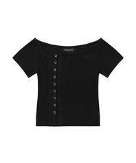 Snap off-shoulder T-shirts - BLACK